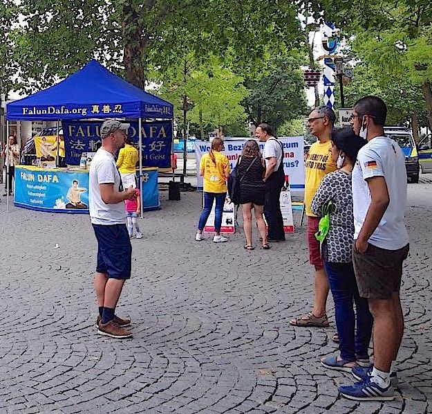 红十字广场路过的大部份人都是慕尼黑当地民众,法轮功学员的活动得到人们的理解和支持。几周以来,法轮功学员已多次在此举办过活动,很多人已得到过资料,或是已经签过名声援法轮功学员反迫害。有的人表示他们已经知道了相关的信息,有些过去还没有签过名的人,直接走到展台前签名。