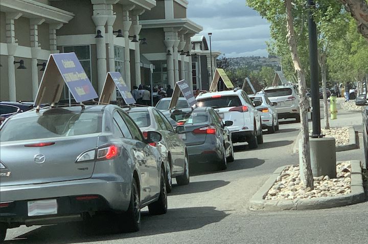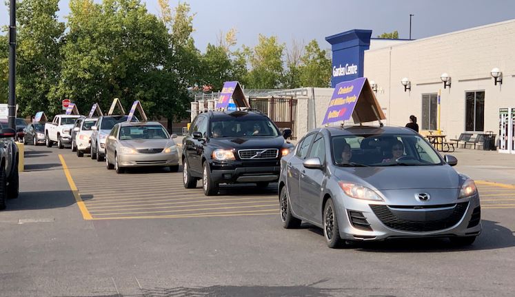 ![]() 图8:真相车队缓缓驶过卡尔加里北部Country Hill Superstore |