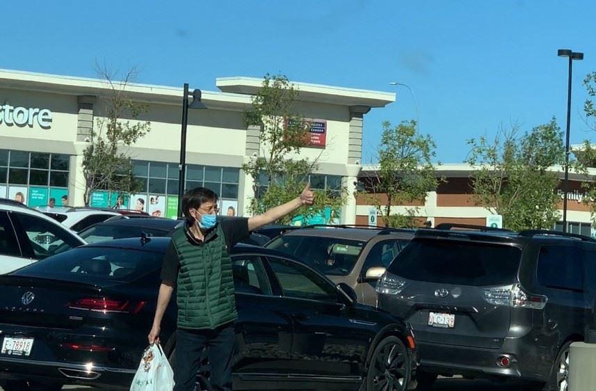 退党车队路过卡城北部的新大统华的时候,一位华人男士刚刚从大统华购物出来,看见长长的真相车队缓缓驶过大统华,随后冲着车队竖起大拇指,表达支持。
