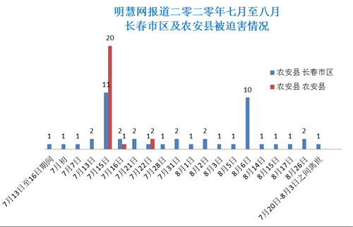被迫害人数不止于此,据明慧网报道,农安县另有至少十余名法轮功学员被绑架,下落不明;长春市区也有法轮功学员被绑架,但没有报道出来;被闯入家门骚扰的法轮功学员人数更多。请知情人士提供更多信息。