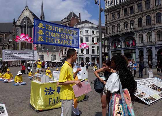 从荷兰首都阿姆斯特丹到鹿特丹、海牙等地,法轮功学员传播真相,获得荷兰民众的支持。一位荷兰老人表示:“我非常尊重你们!”