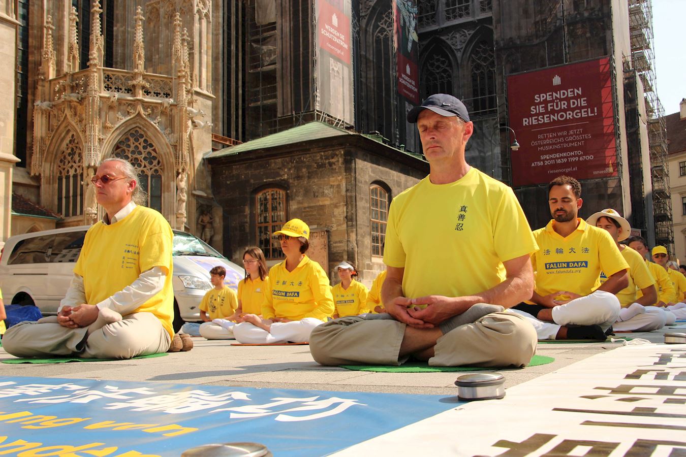 【明慧网二零二零年九月十九日】位于奥地利首都维也纳市中心的史蒂芬广场(Stephansplatz)常被推荐为游维也纳的必到之处。在这里既可看到被誉为“维也纳心脏”的历史悠久的圣史蒂芬大教堂,也可以在琳琅满目的各大品牌商店里选购心仪之物。在过去的多年里,很多人在史蒂芬广场上有了独特的收获——他们可以了解正在中国发生着什么,还可以通过签名帮助那些身陷囹圄的无辜好人,最后还可以带上资料送给更多的人。多年来,法轮功学员不定期在史蒂芬广场举办各种讲真相的活动,平均每两周就会有一次。