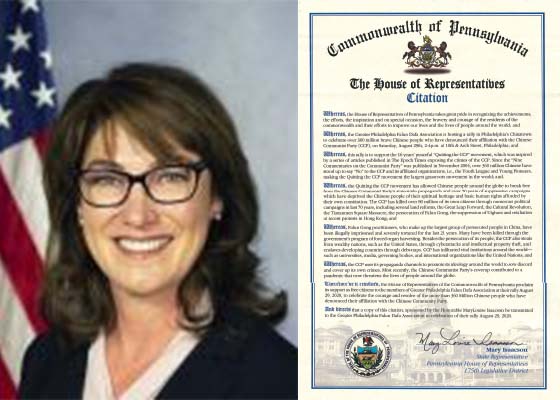 宾州州众议员颁发褒奖 声援华人退出中共(图)