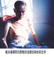 老实巴交的宋文华在朝阳沟劳教所完全失去了人身自由,干活,坐板得直直的,稍动一点就招来打骂,那是不分老少的。在长期被迫害中,有不少人得了肺结核。宋文华也被感染上,胸部腹水,整天发烧、咳嗽。劳教所把这些得病的都圈在一个屋子里,让他们互相感染,也不给治疗。宋文华家属听到后,焦急万分,找劳教所要求放人,怕耽误了治疗时间。他们说:“我们管不了,你们找司法局去。”到司法局后,有个张处长说:“不能放,剩一口气再放。”结果给耽误了最佳治疗时间,宋文华的病情恶化了。