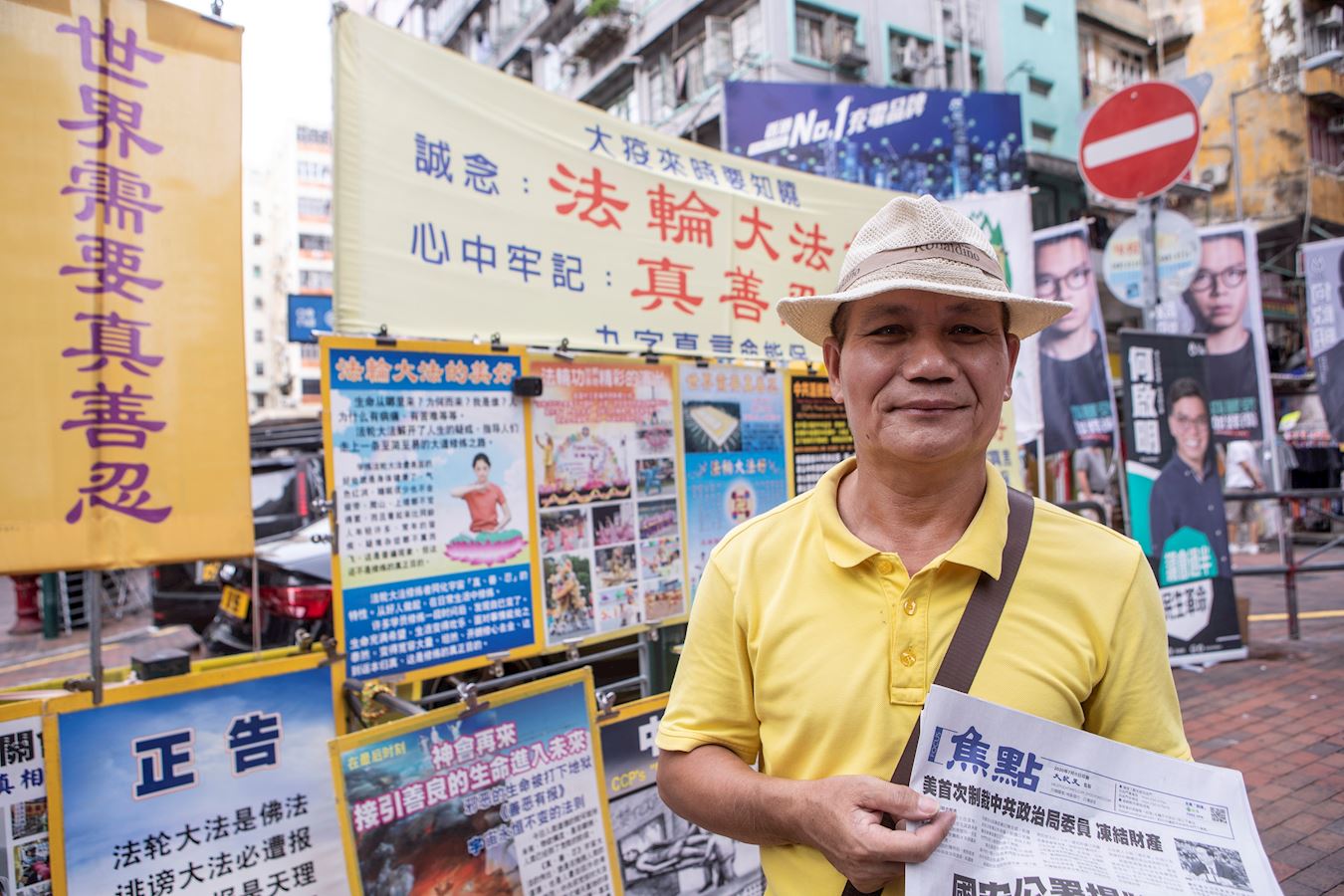 近来,全港多地都有法轮功真相点被不明人员破坏或挑衅,旺角亚皆老街真相点多次被人泼墨,法轮功学员于是用塑胶袋包起横幅标语。铜锣湾真相点的标语也被人扯下。