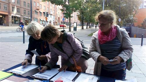 '图3~7:芬兰民众踊跃签名,表达对法轮功长达二十一年和平理性反迫害的支持。'