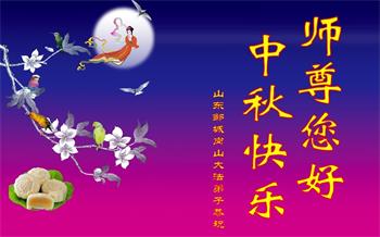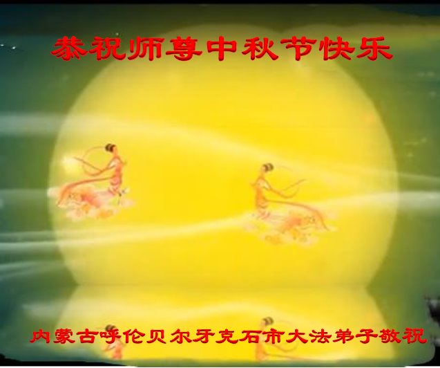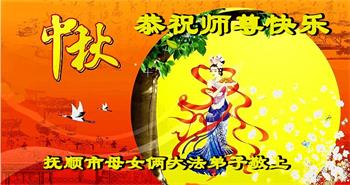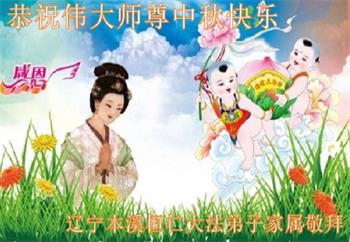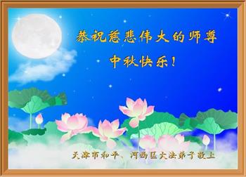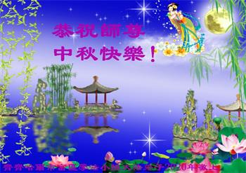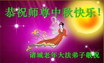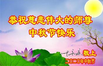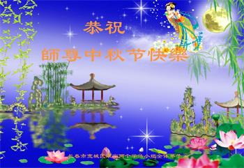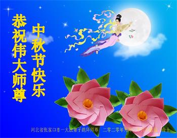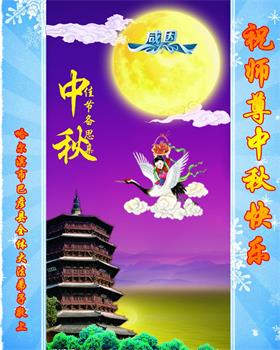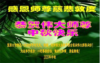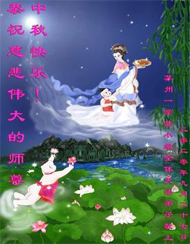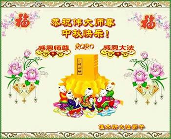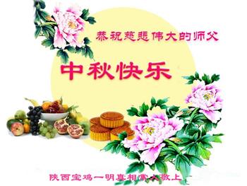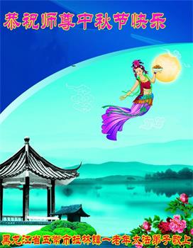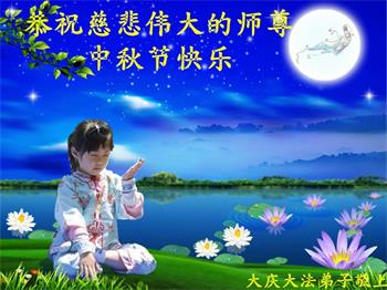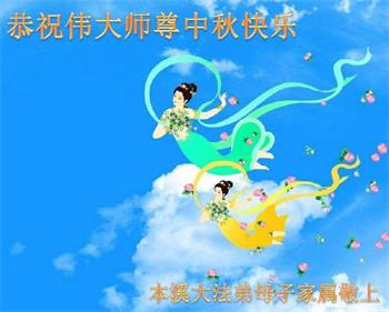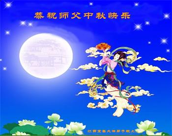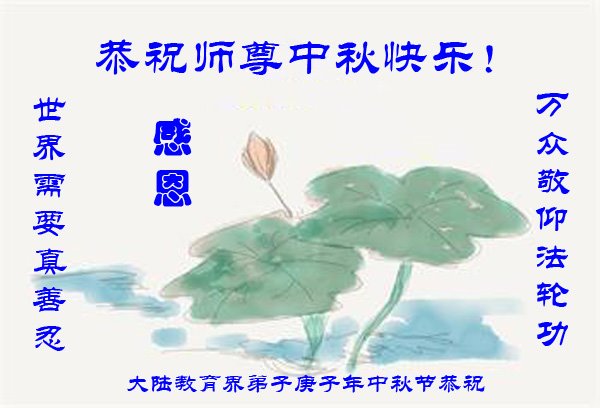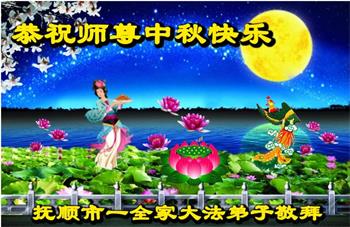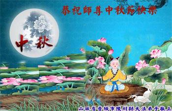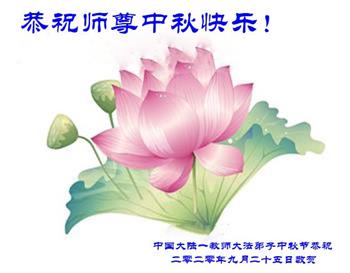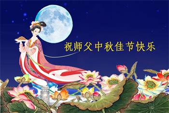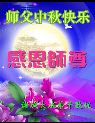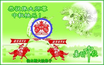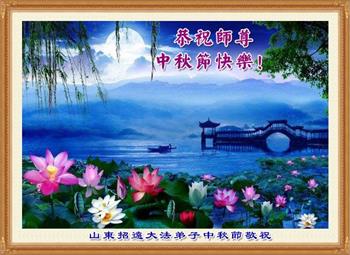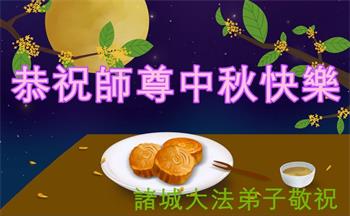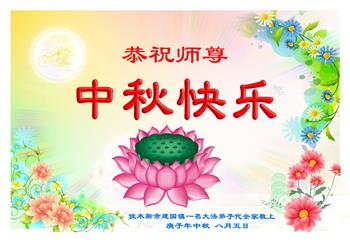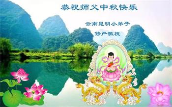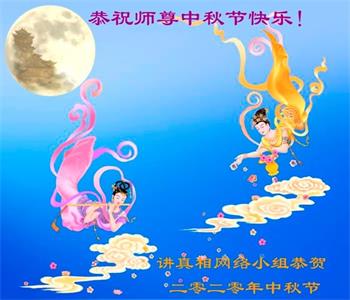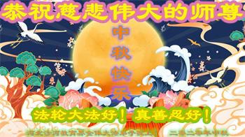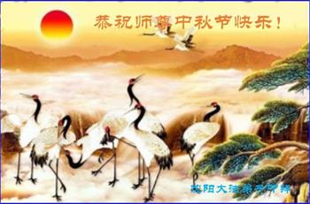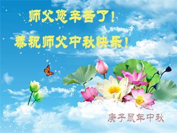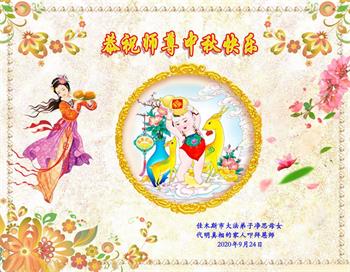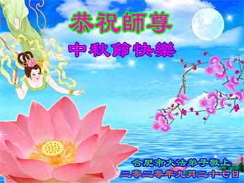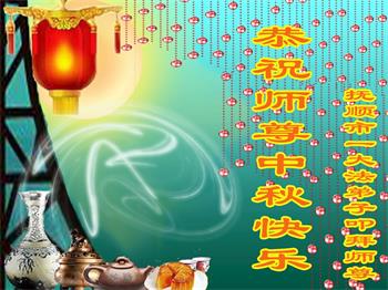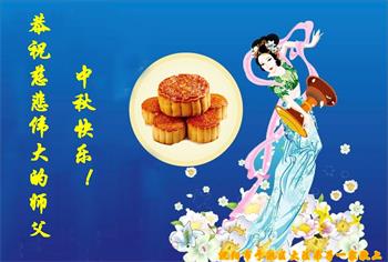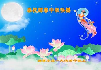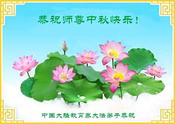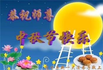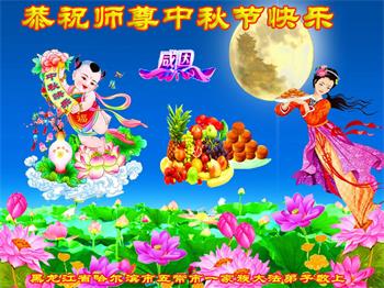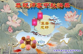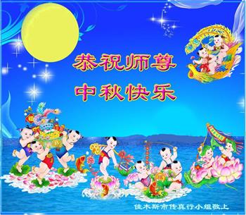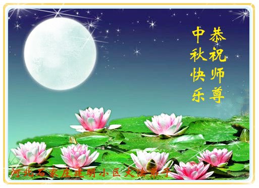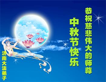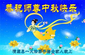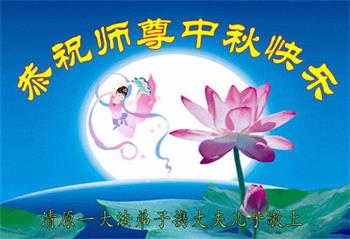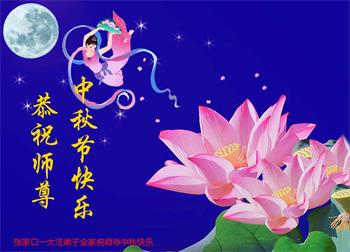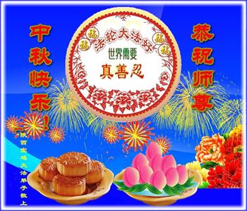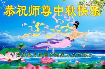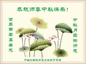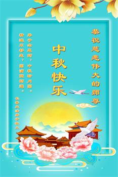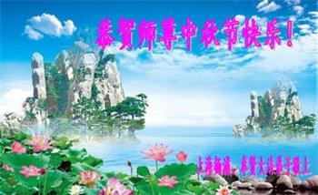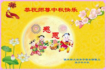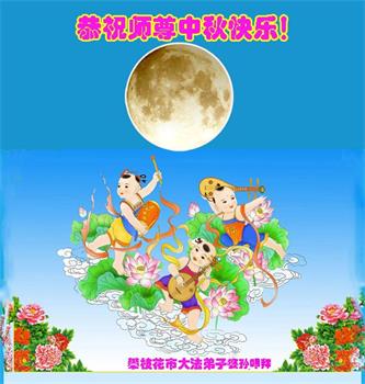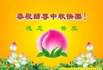 中国民众在贺词中写道:在中秋节来临之际,感恩大法师父的慈悲保护!我们盼望您早日回归中土,恩泽百姓,让亿万个家庭解开中共的枷锁,让中华民族五千年的文明在中原再现。