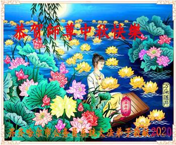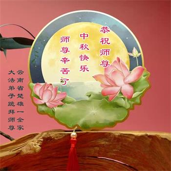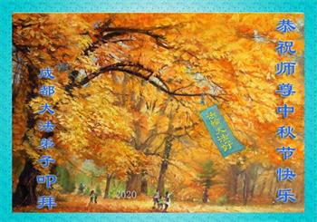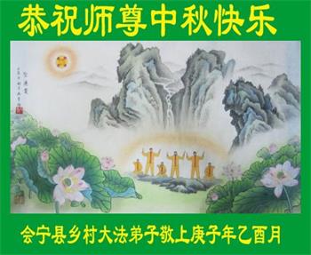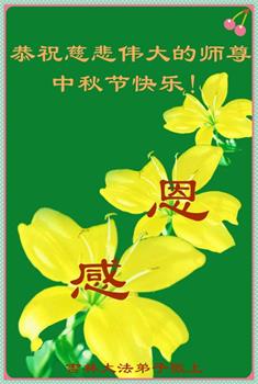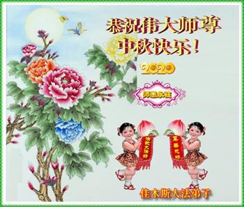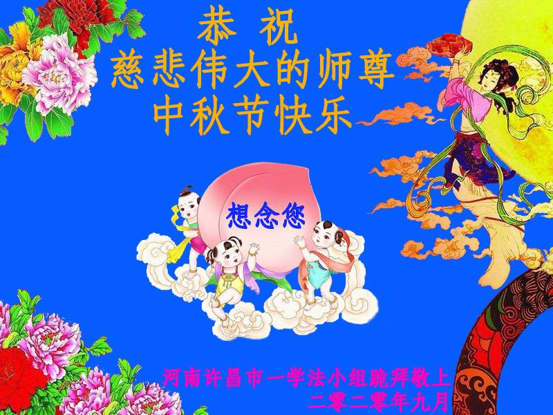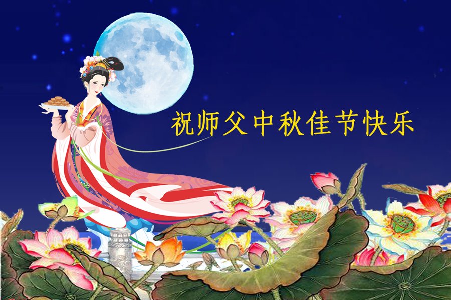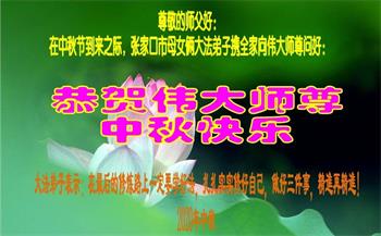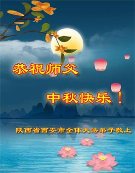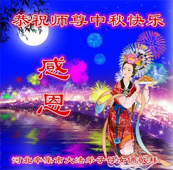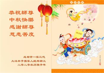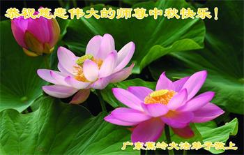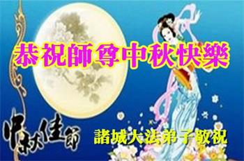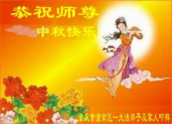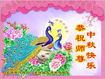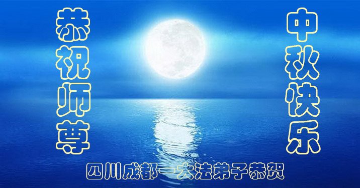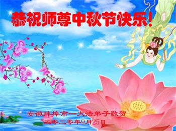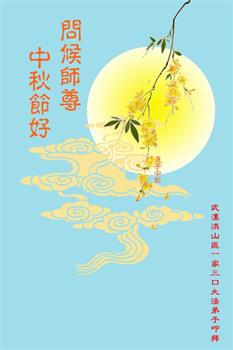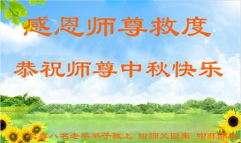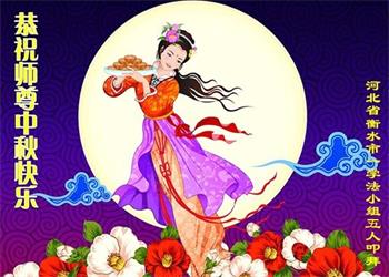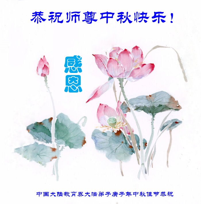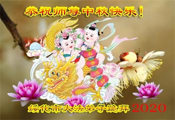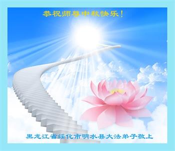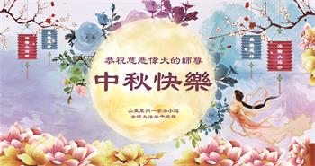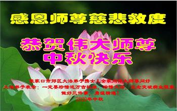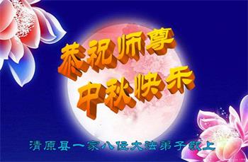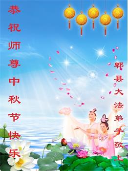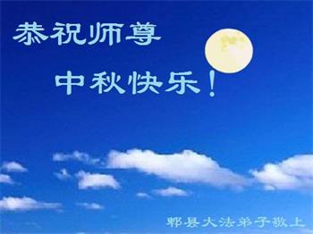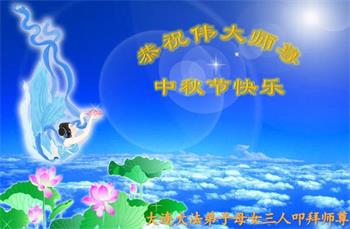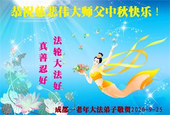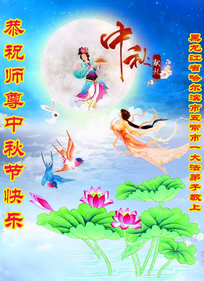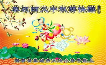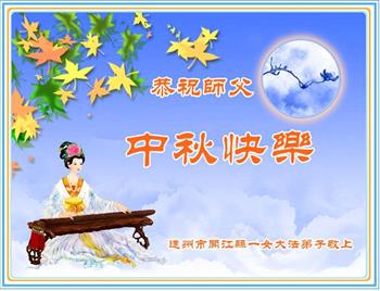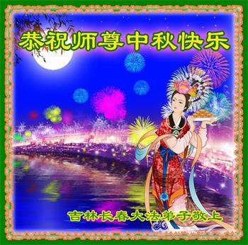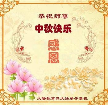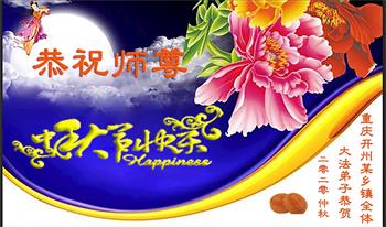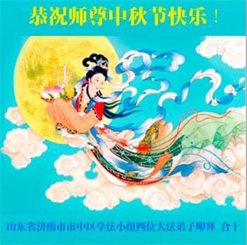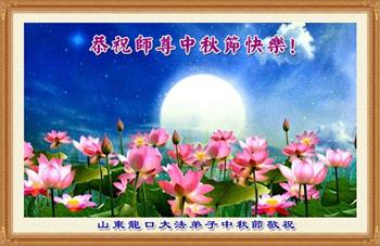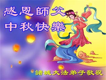 中国民众在贺词中写道:在中秋节来临之际,感恩大法师父的慈悲保护!我们盼望您早日回归中土,恩泽百姓,让亿万个家庭解开中共的枷锁,让中华民族五千年的文明在中原再现。