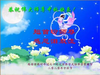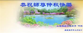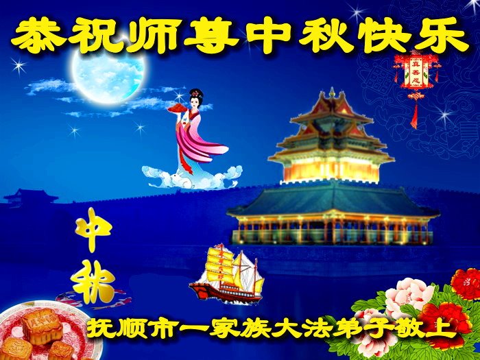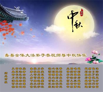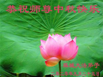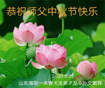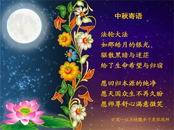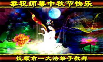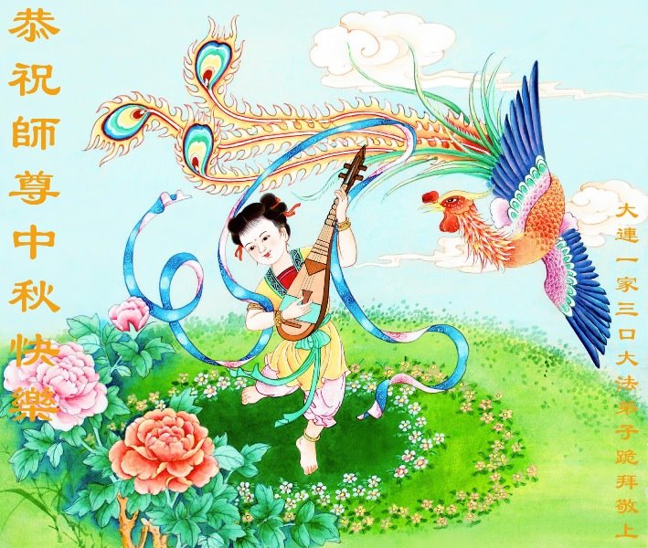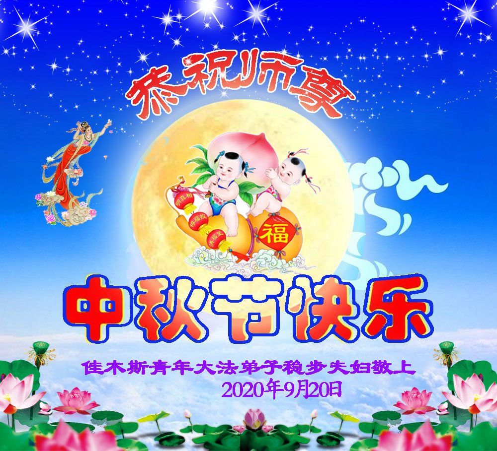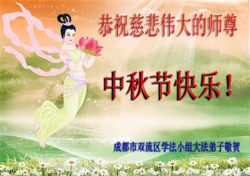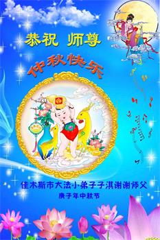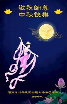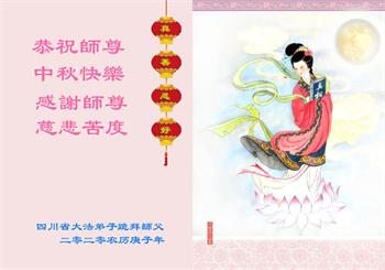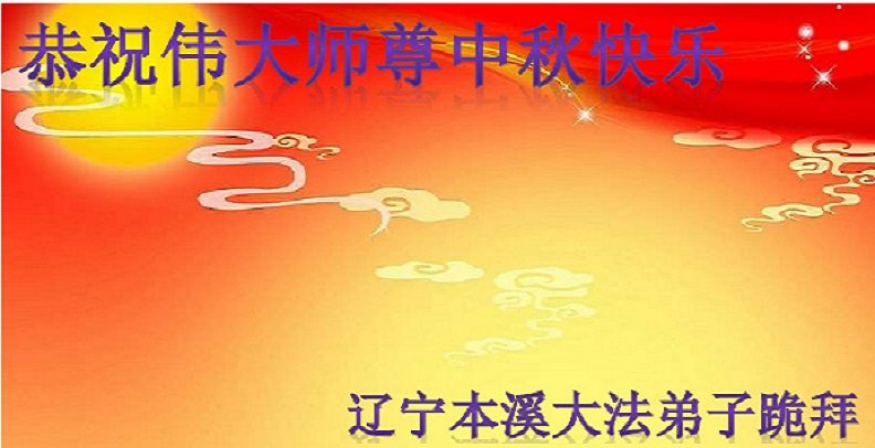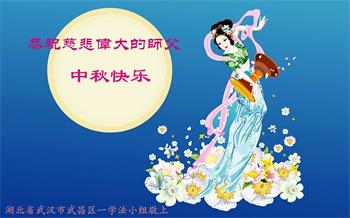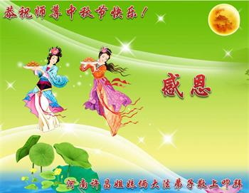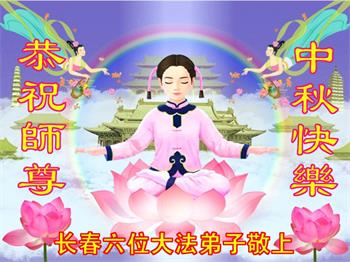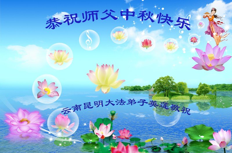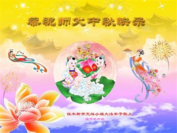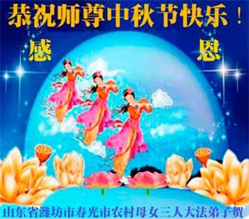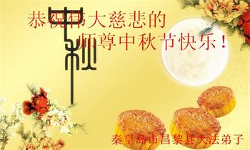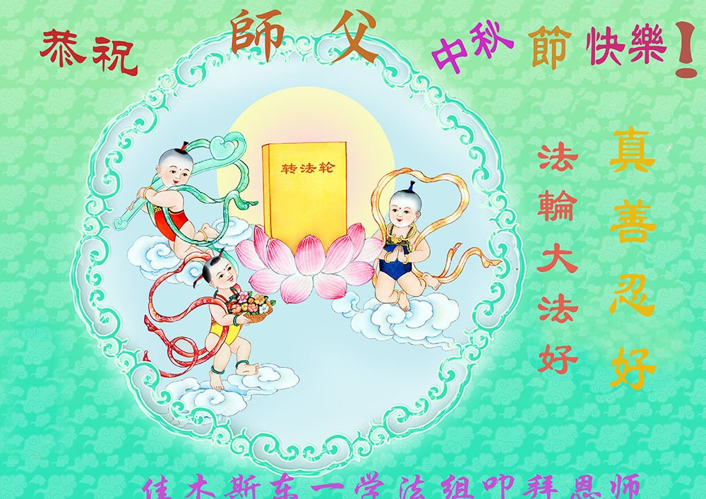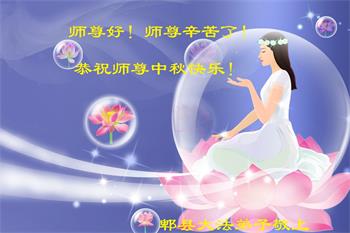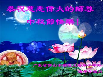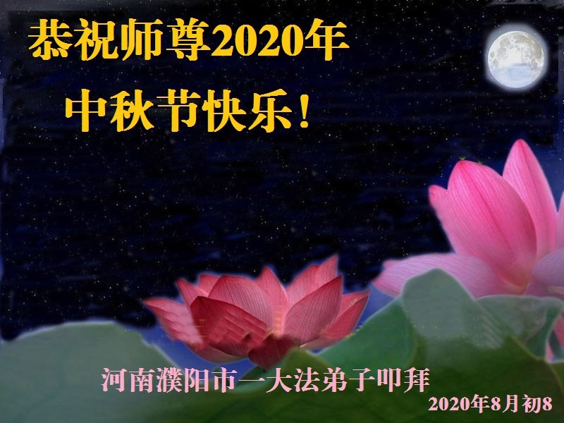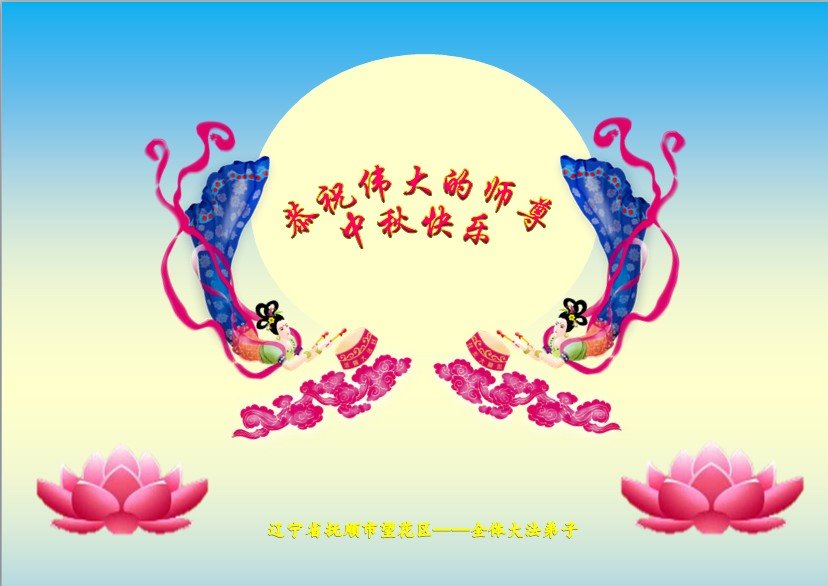 中国民众在贺词中写道:在中秋节来临之际,感恩大法师父的慈悲保护!我们盼望您早日回归中土,恩泽百姓,让亿万个家庭解开中共的枷锁,让中华民族五千年的文明在中原再现。