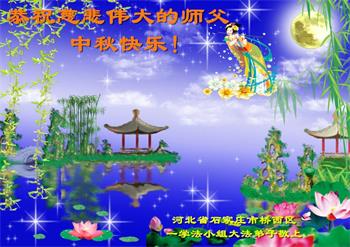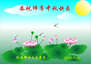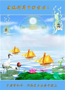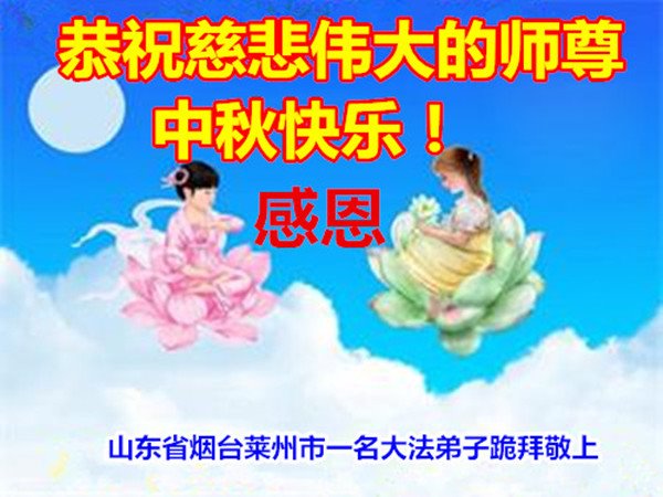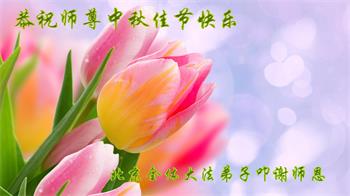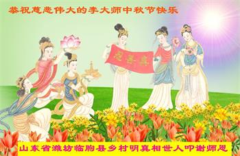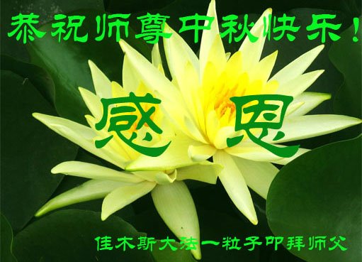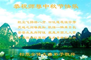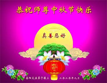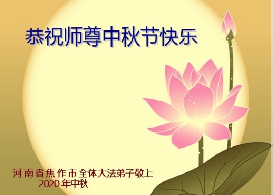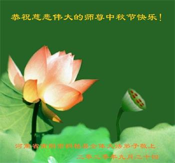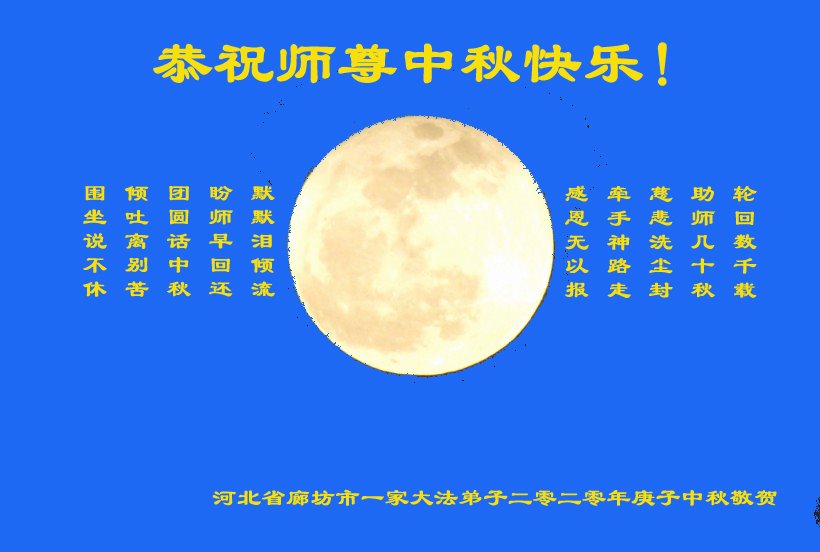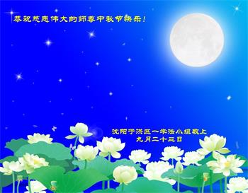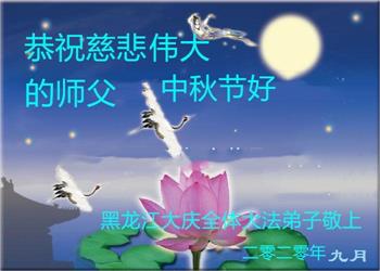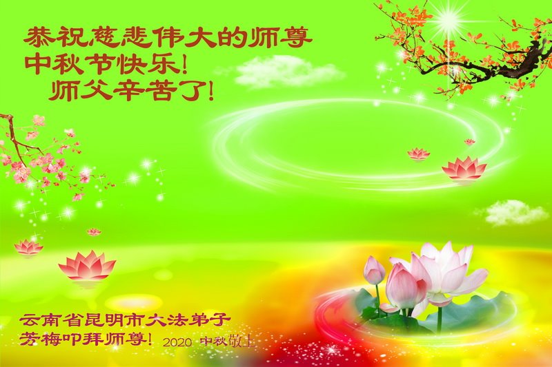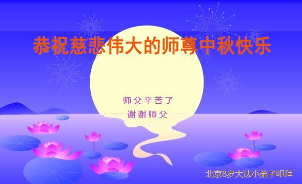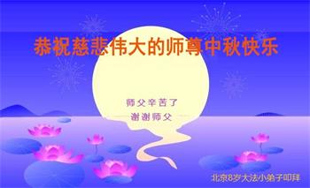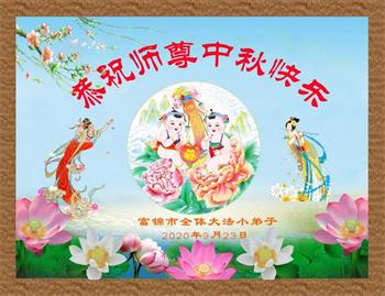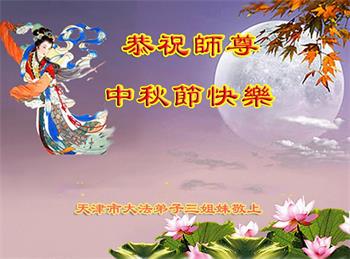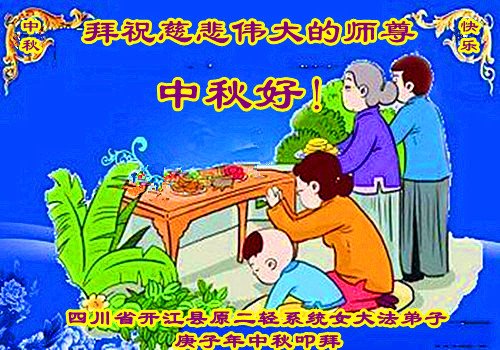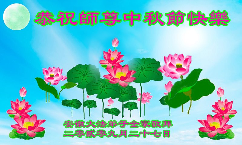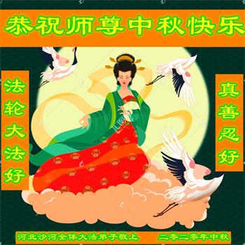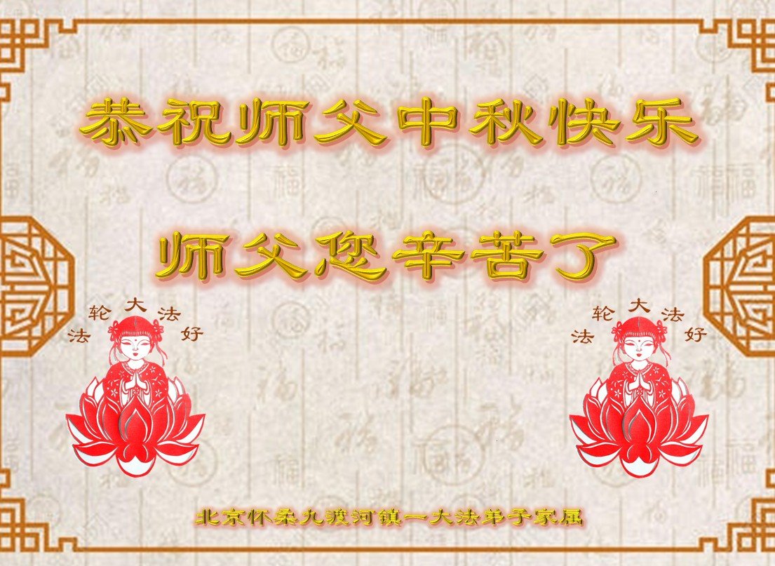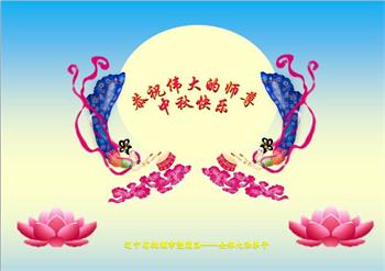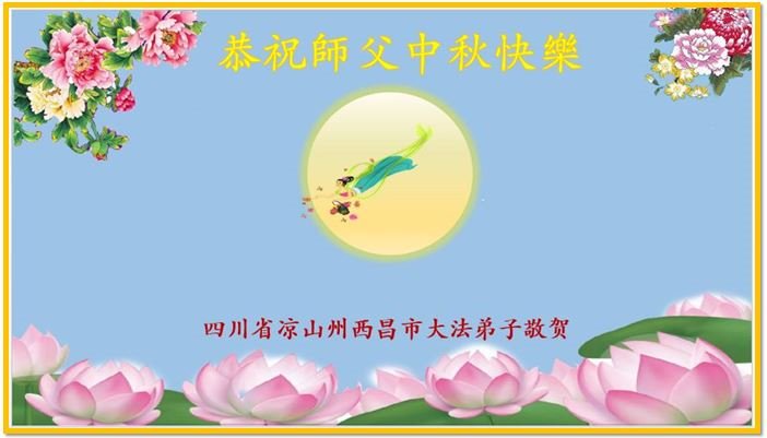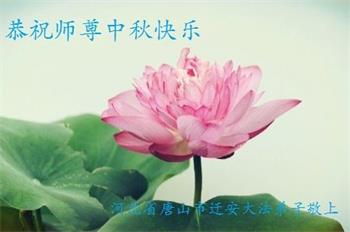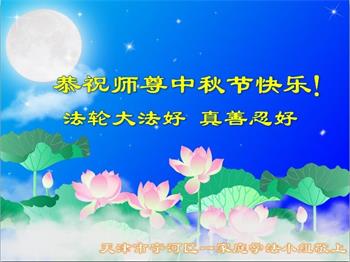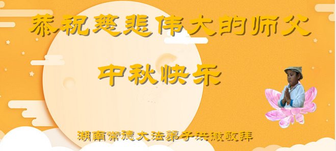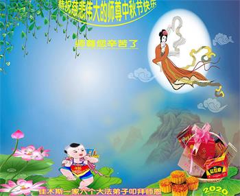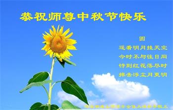 中国民众在贺词中写道:在中秋节来临之际,感恩大法师父的慈悲保护!我们盼望您早日回归中土,恩泽百姓,让亿万个家庭解开中共的枷锁,让中华民族五千年的文明在中原再现。