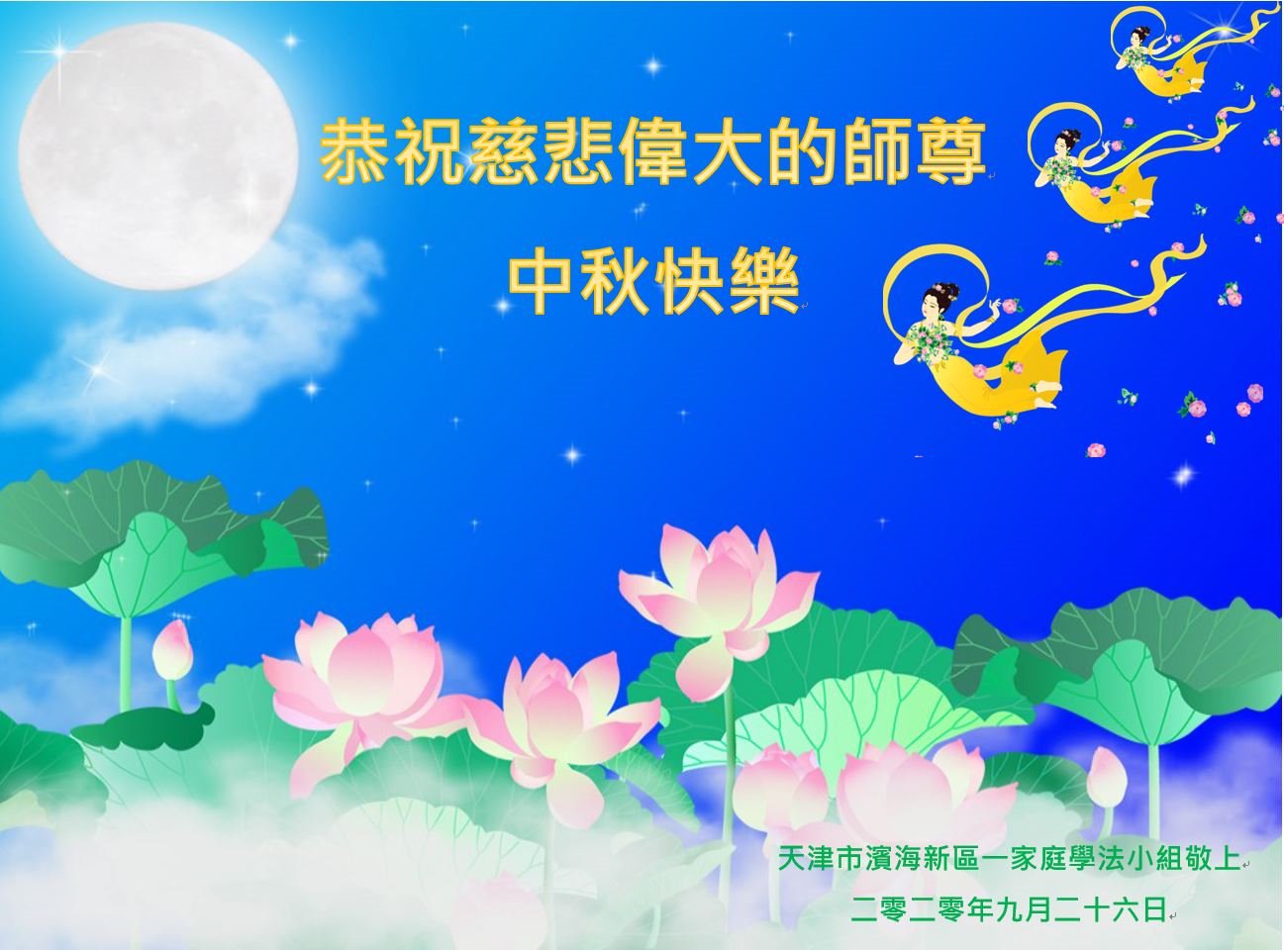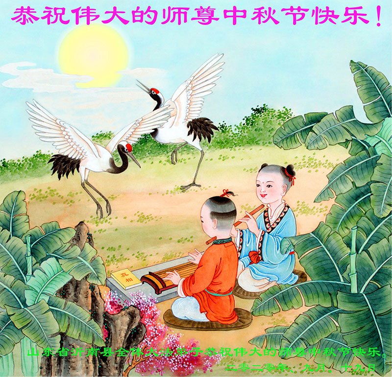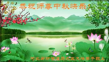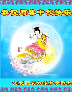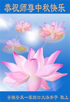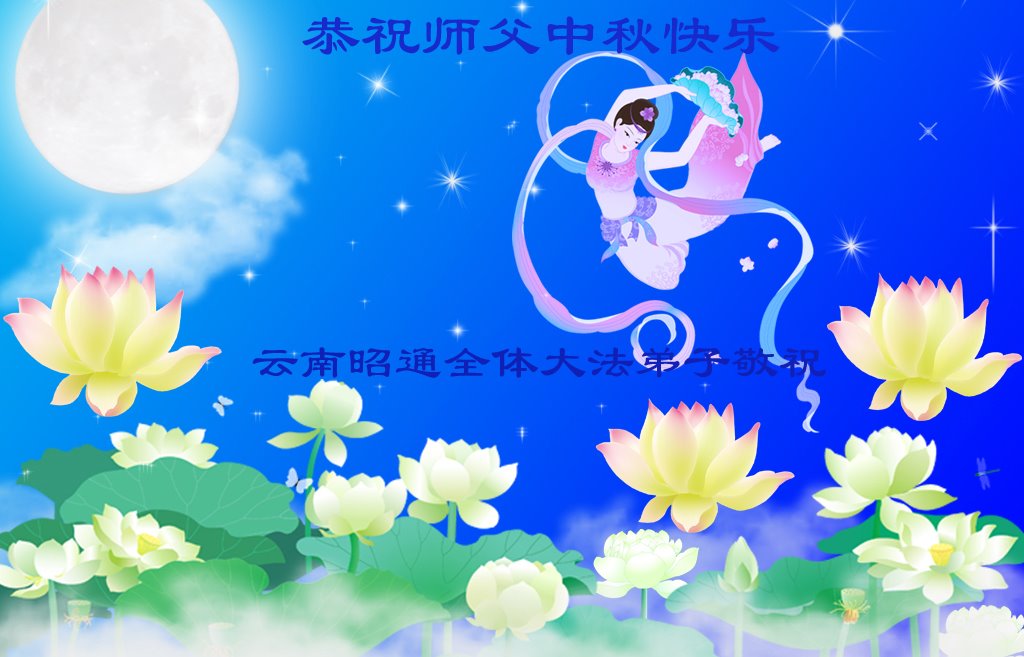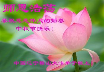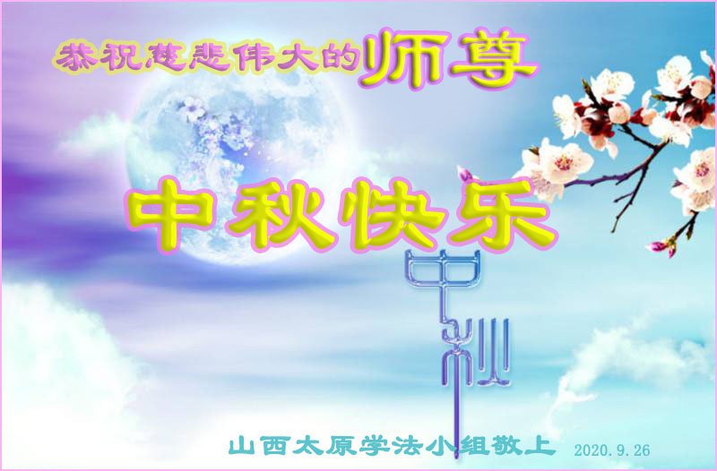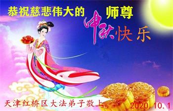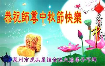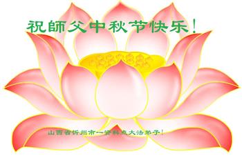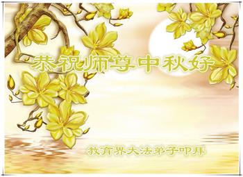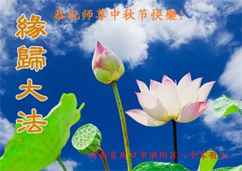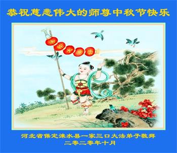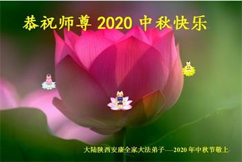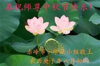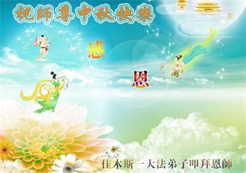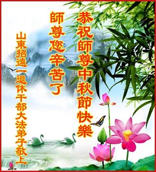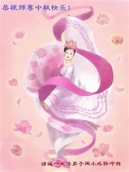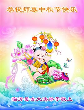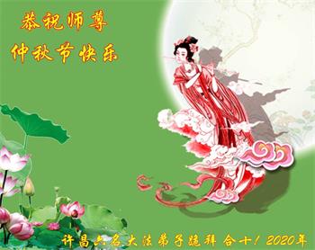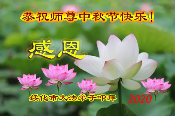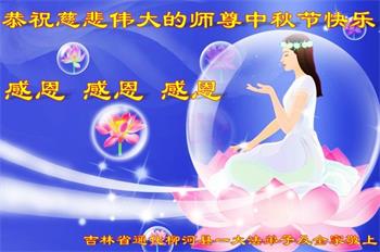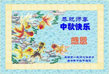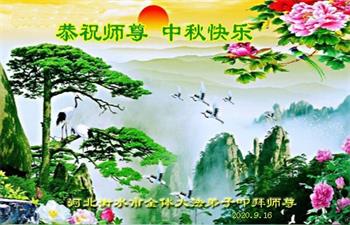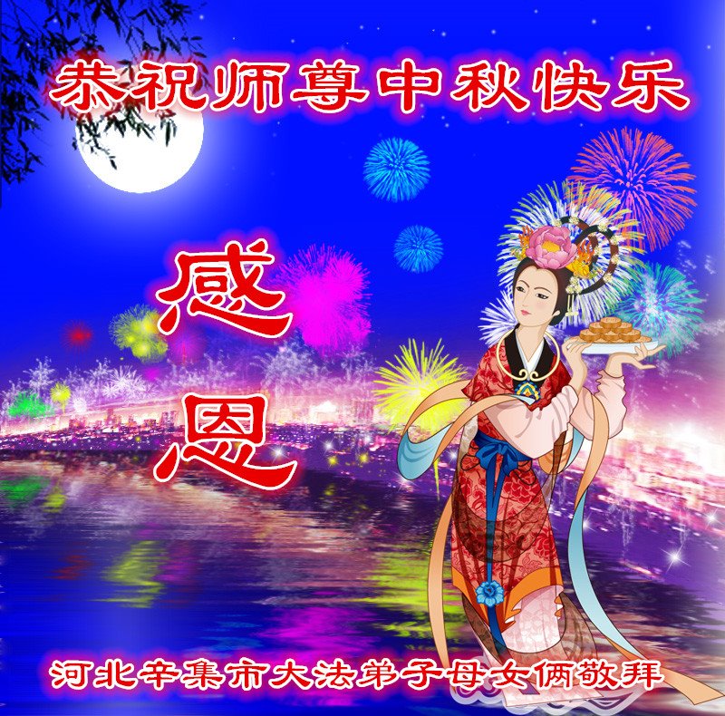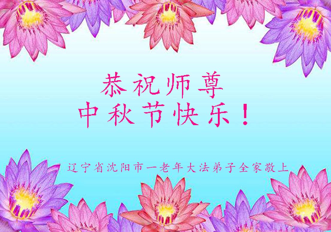 中国民众在贺词中写道:在中秋节来临之际,感恩大法师父的慈悲保护!我们盼望您早日回归中土,恩泽百姓,让亿万个家庭解开中共的枷锁,让中华民族五千年的文明在中原再现。