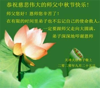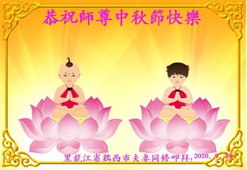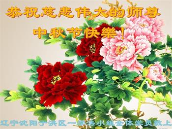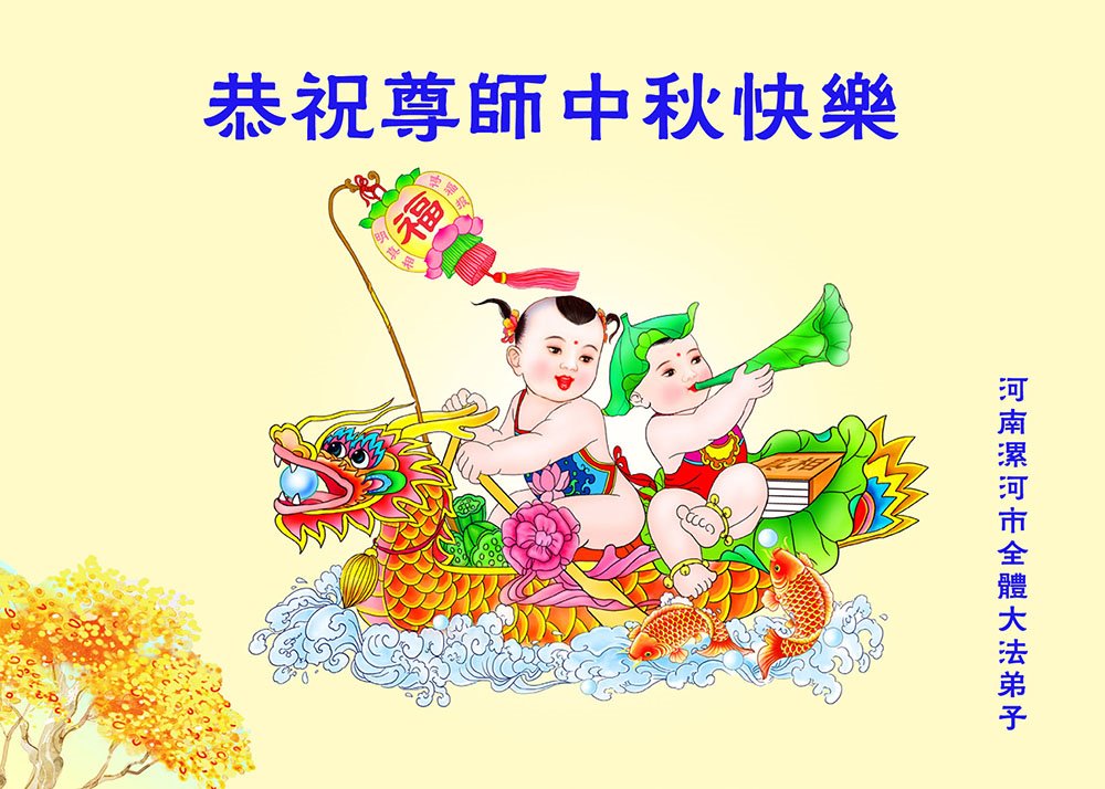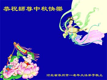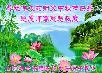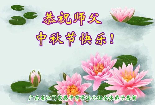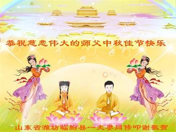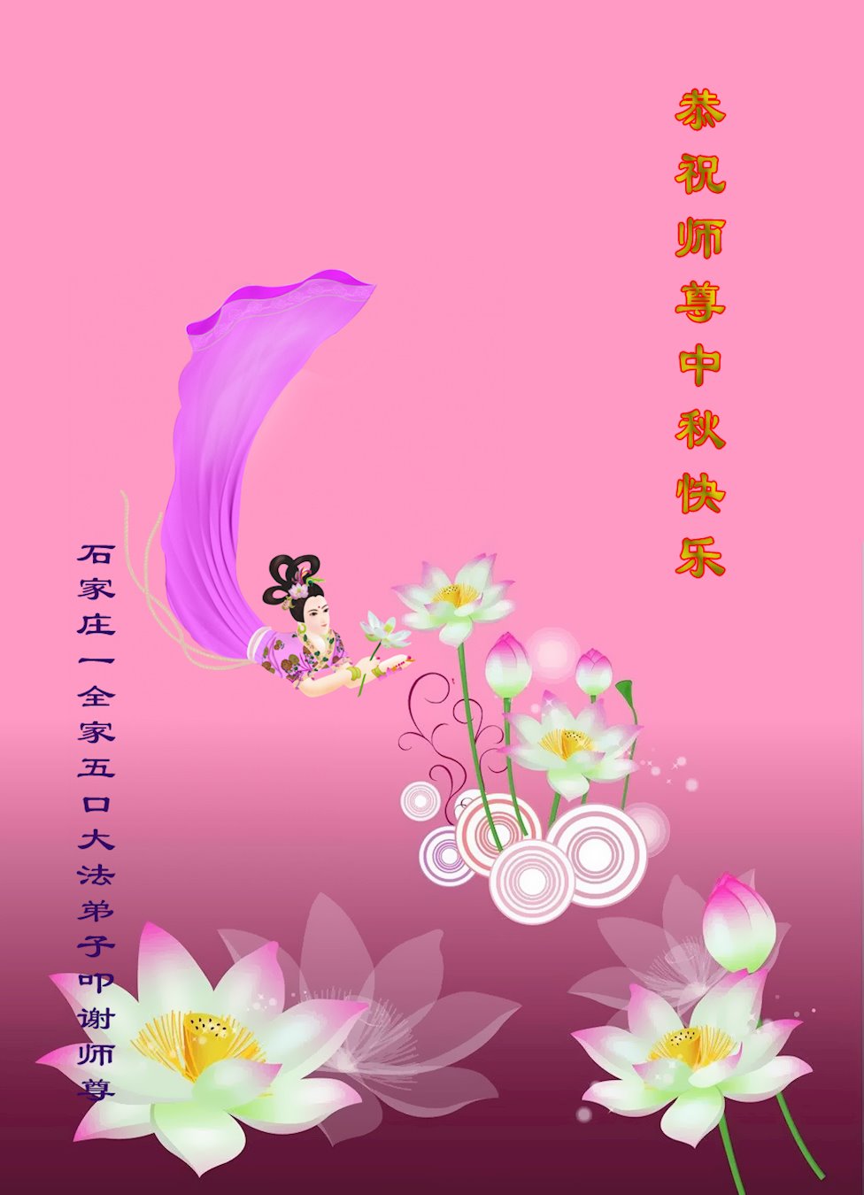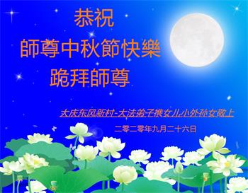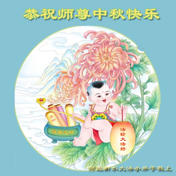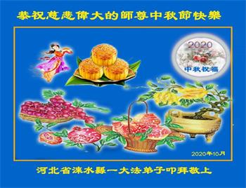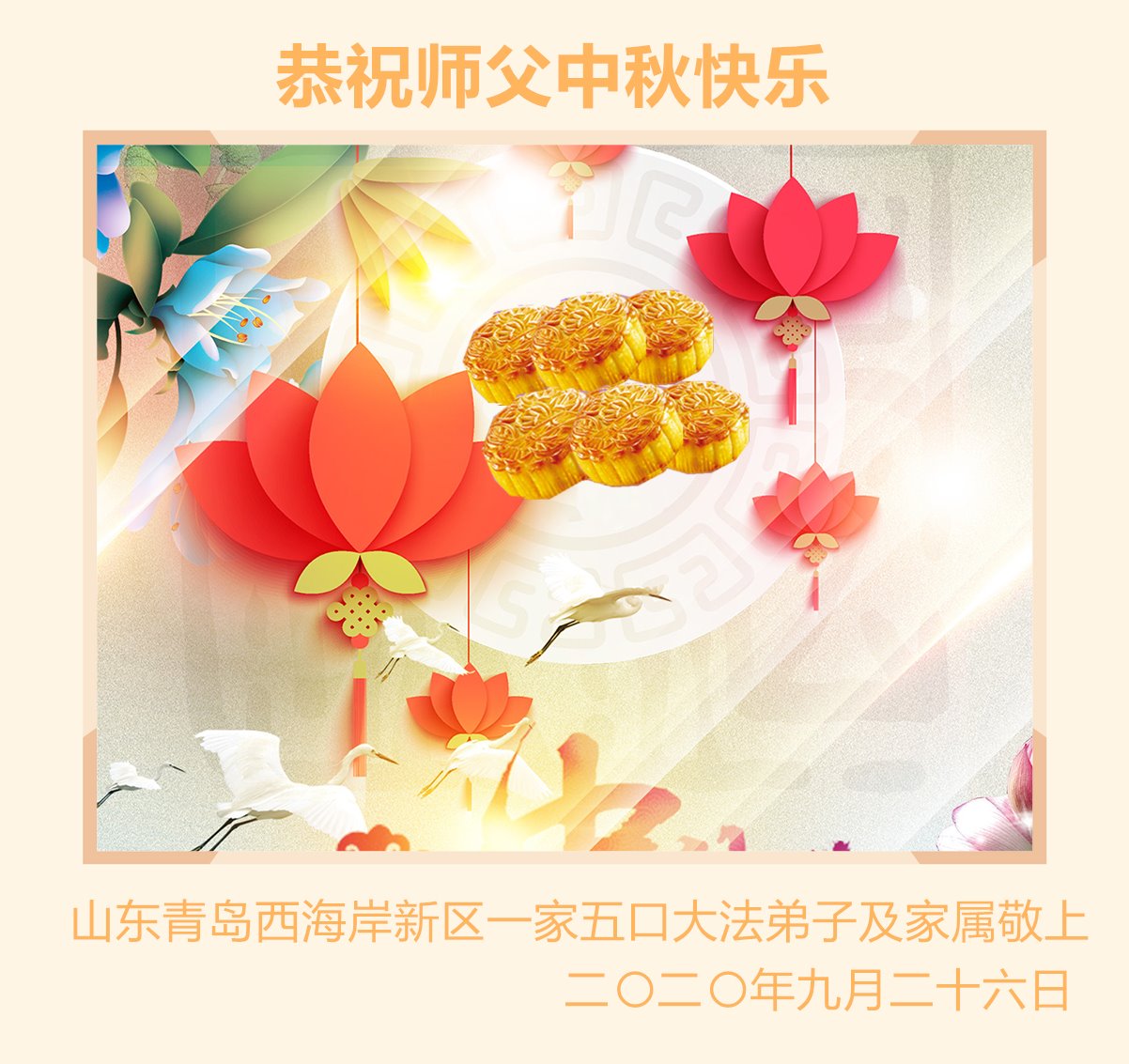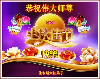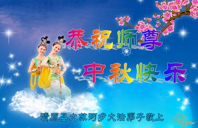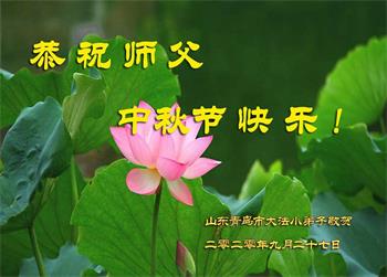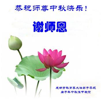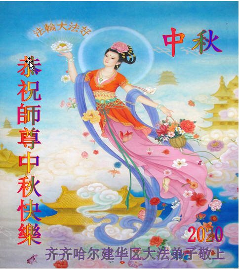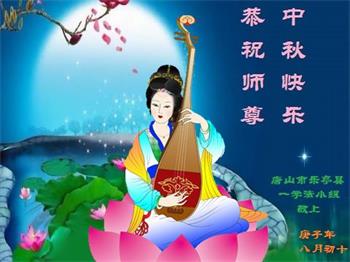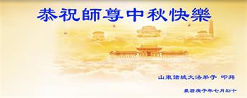 中国民众在贺词中写道:在中秋节来临之际,感恩大法师父的慈悲保护!我们盼望您早日回归中土,恩泽百姓,让亿万个家庭解开中共的枷锁,让中华民族五千年的文明在中原再现。