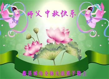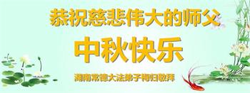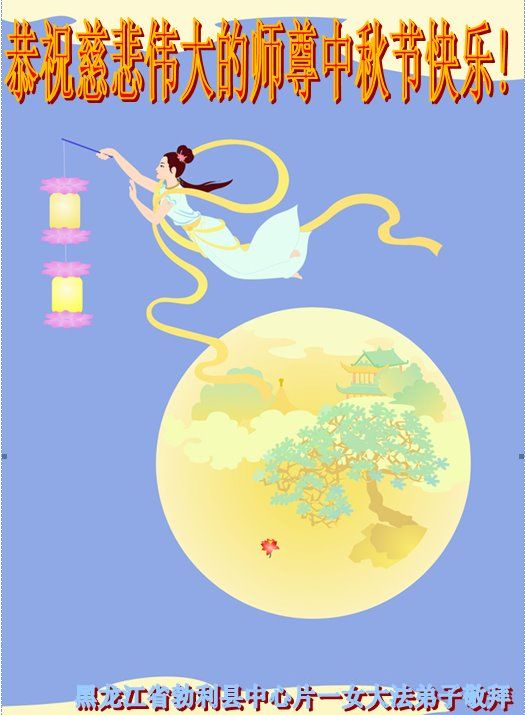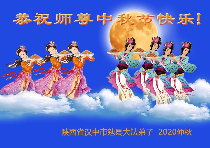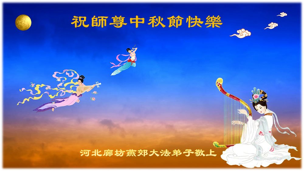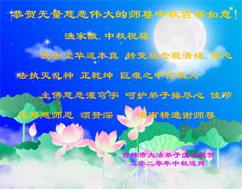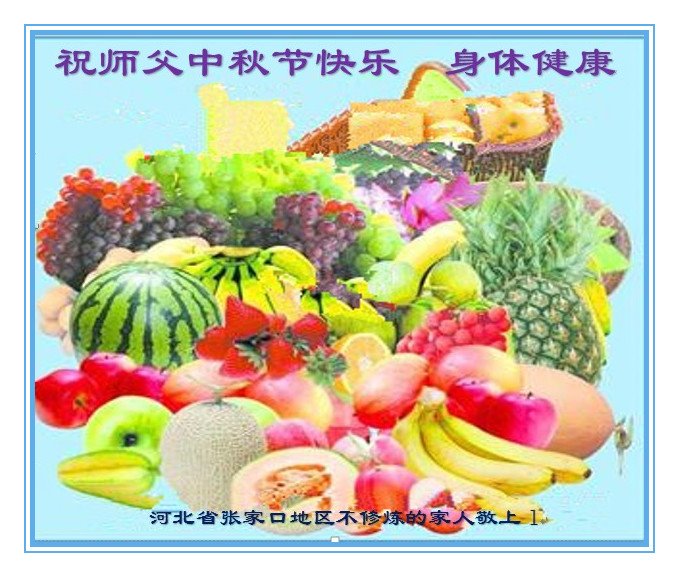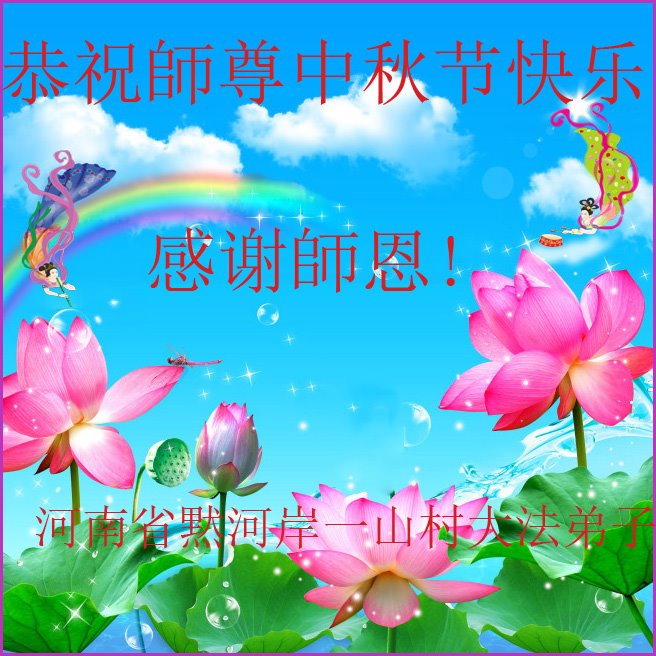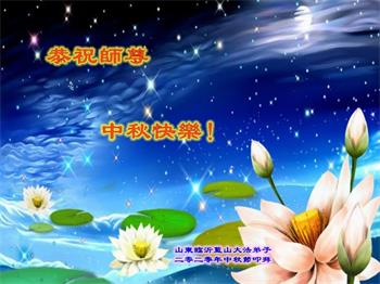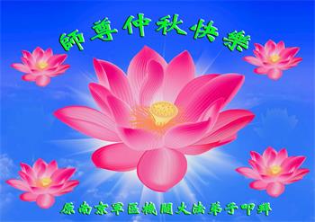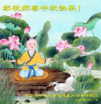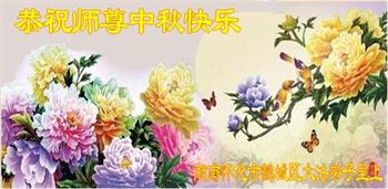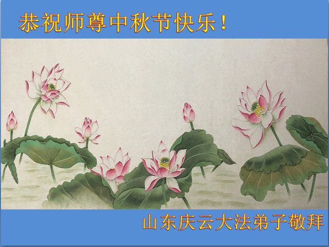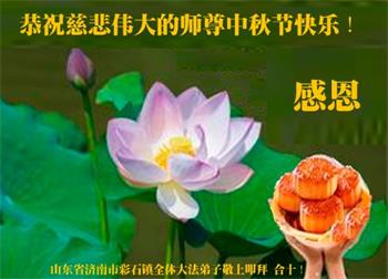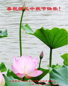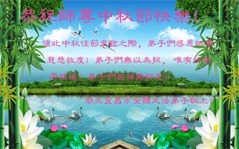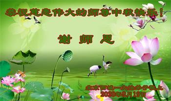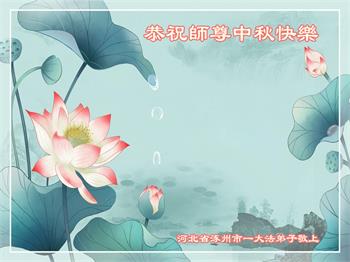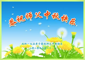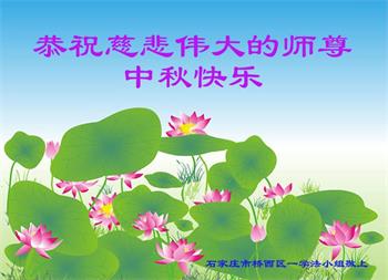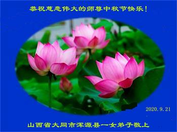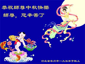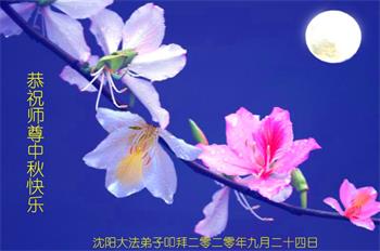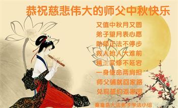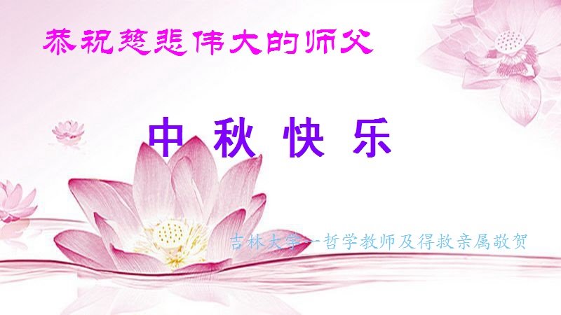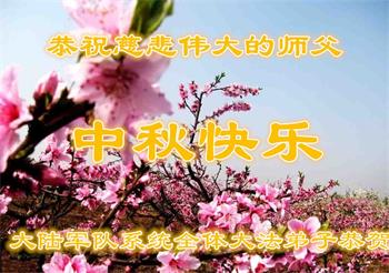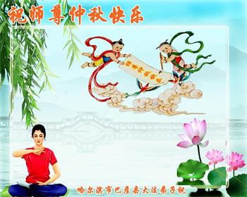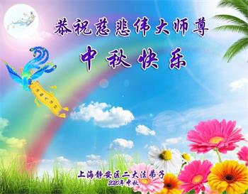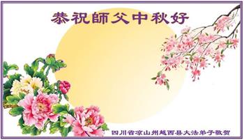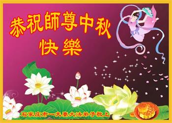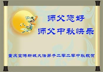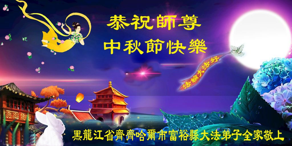 中国民众在贺词中写道:在中秋节来临之际,感恩大法师父的慈悲保护!我们盼望您早日回归中土,恩泽百姓,让亿万个家庭解开中共的枷锁,让中华民族五千年的文明在中原再现。