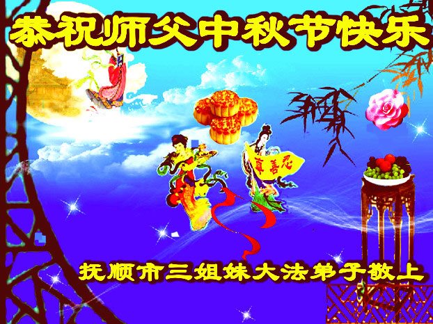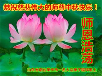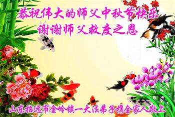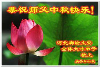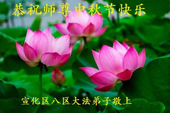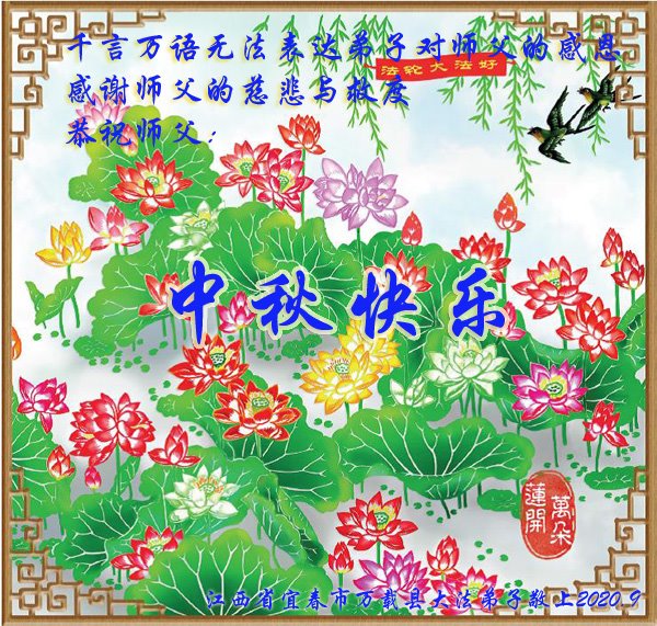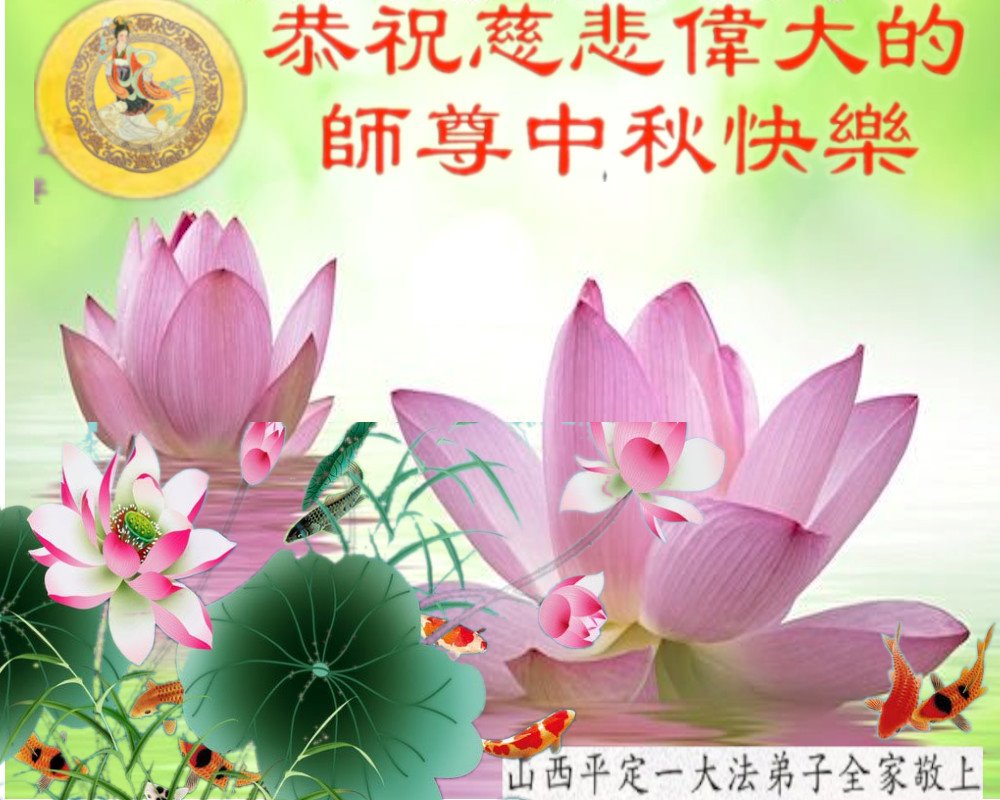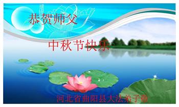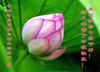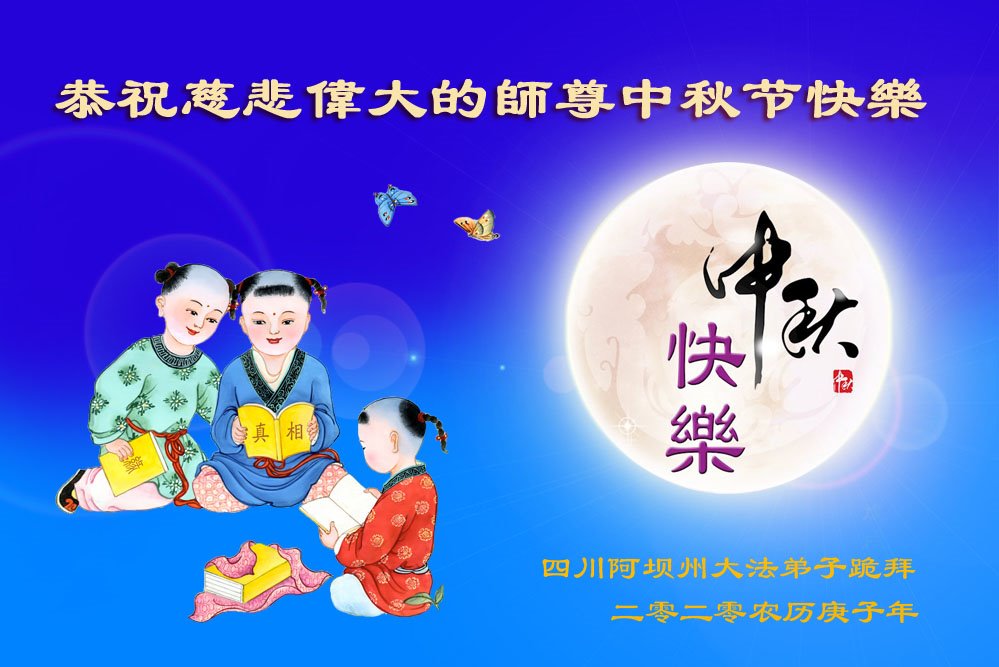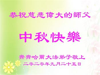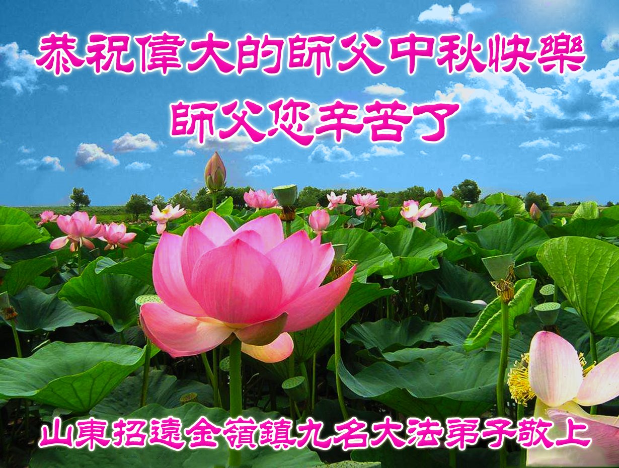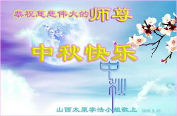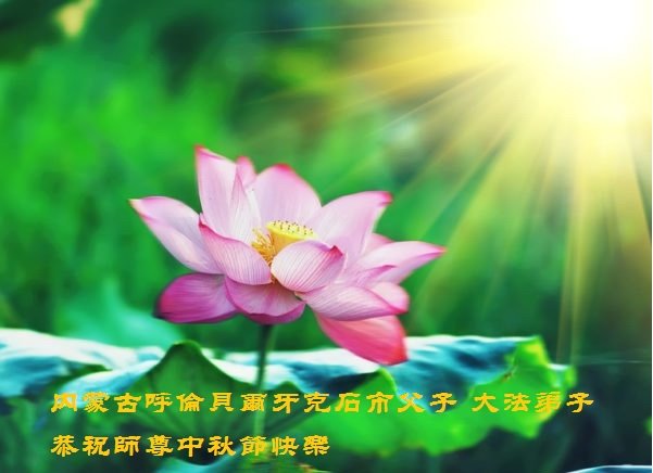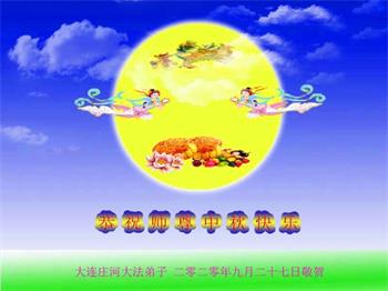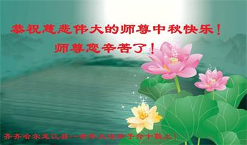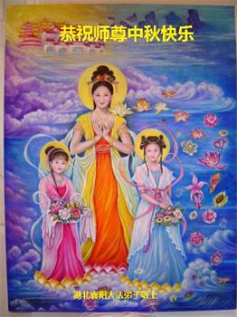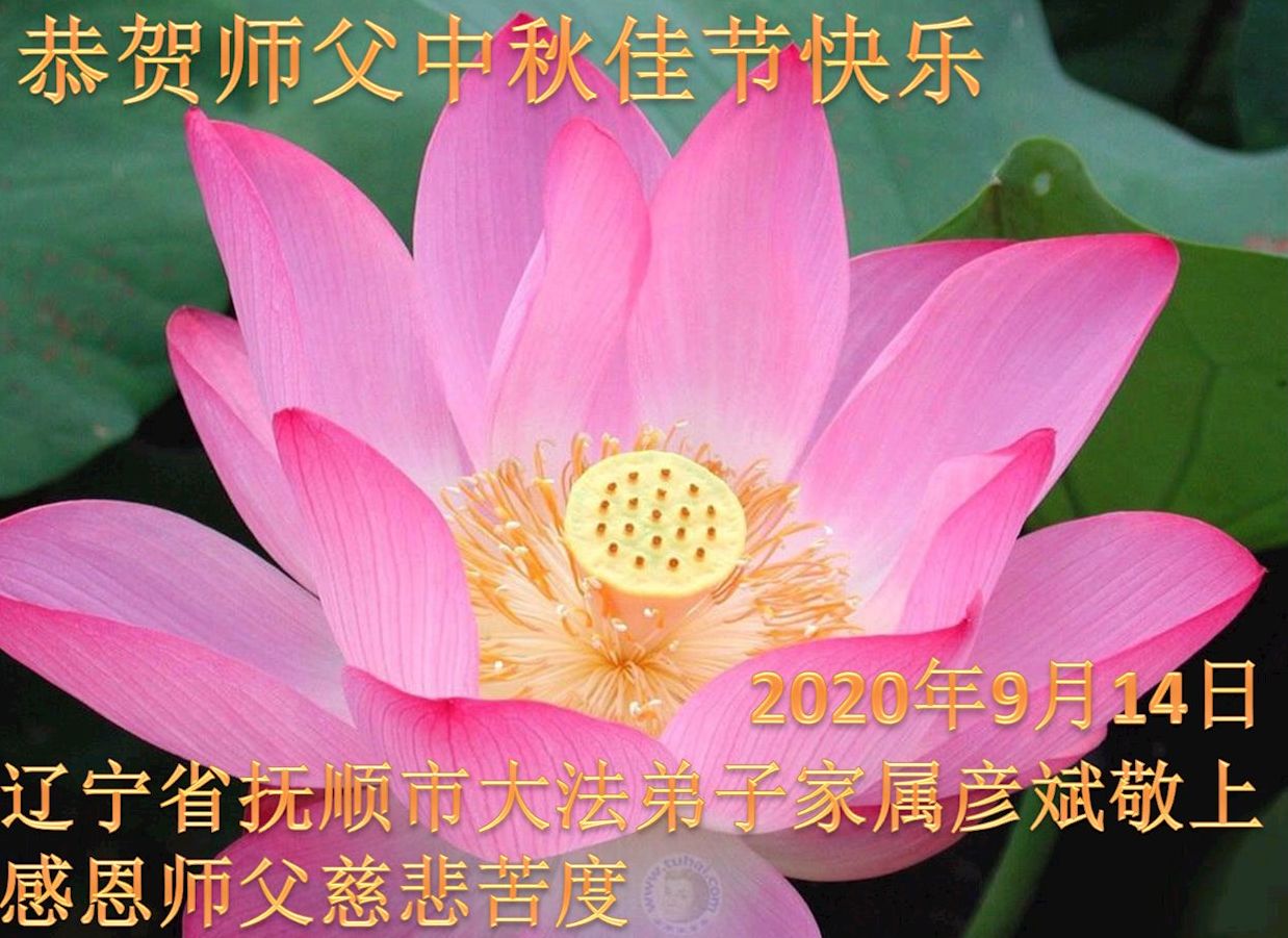 中国民众在贺词中写道:在中秋节来临之际,感恩大法师父的慈悲保护!我们盼望您早日回归中土,恩泽百姓,让亿万个家庭解开中共的枷锁,让中华民族五千年的文明在中原再现。