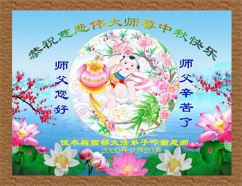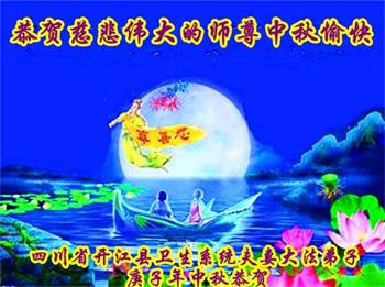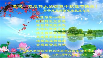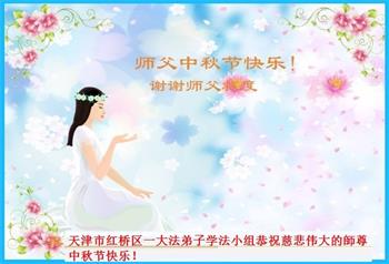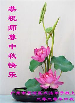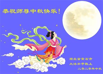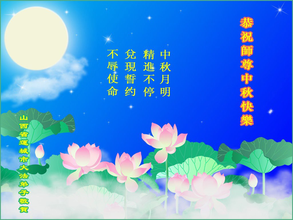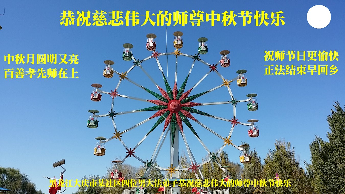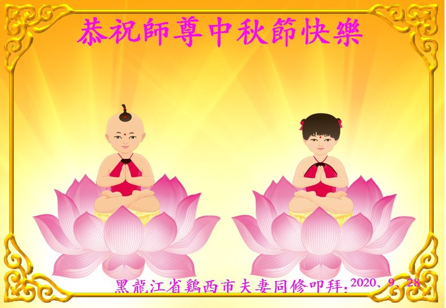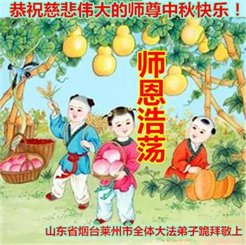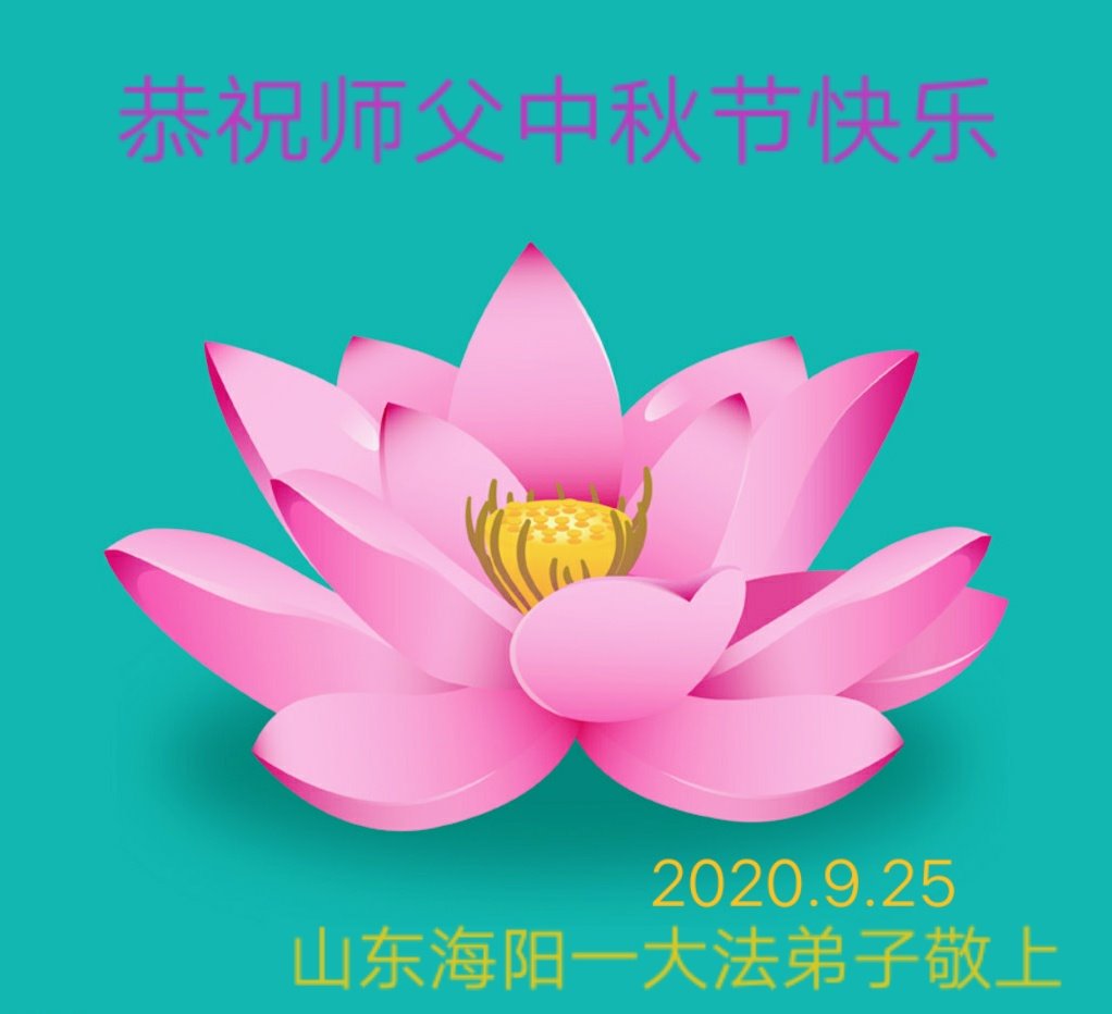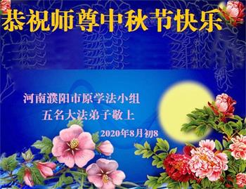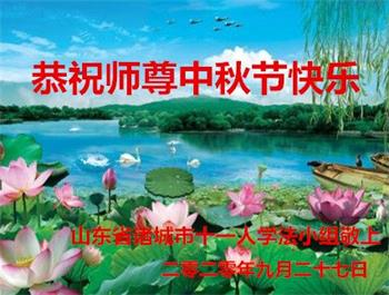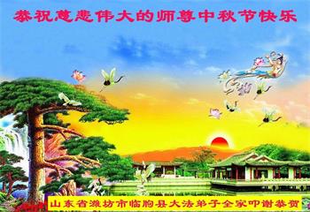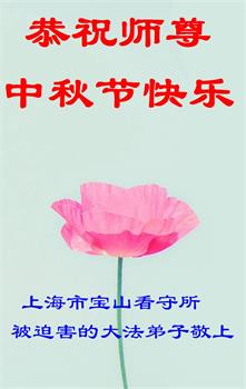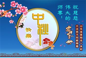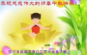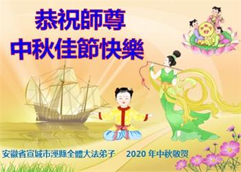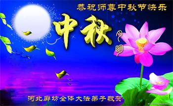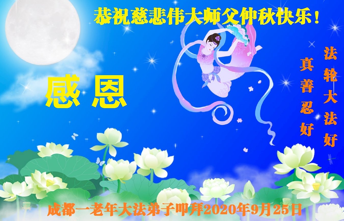 中国民众在贺词中写道:在中秋节来临之际,感恩大法师父的慈悲保护!我们盼望您早日回归中土,恩泽百姓,让亿万个家庭解开中共的枷锁,让中华民族五千年的文明在中原再现。