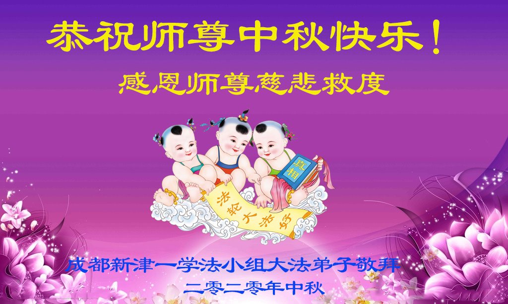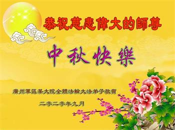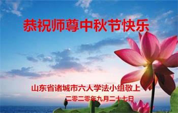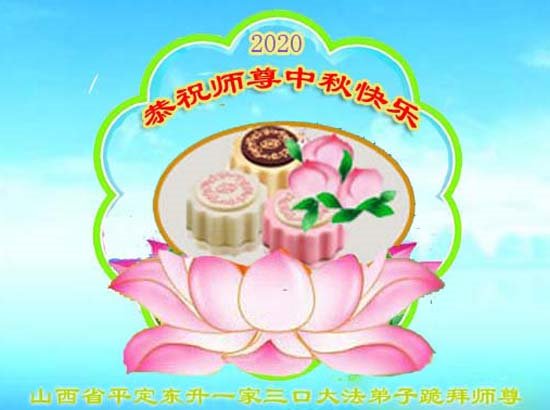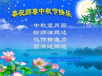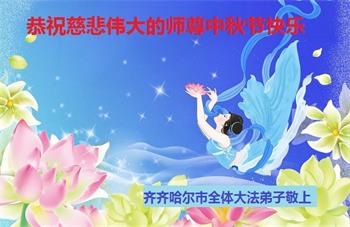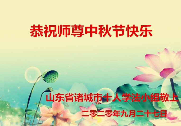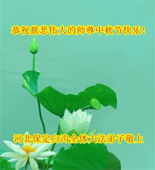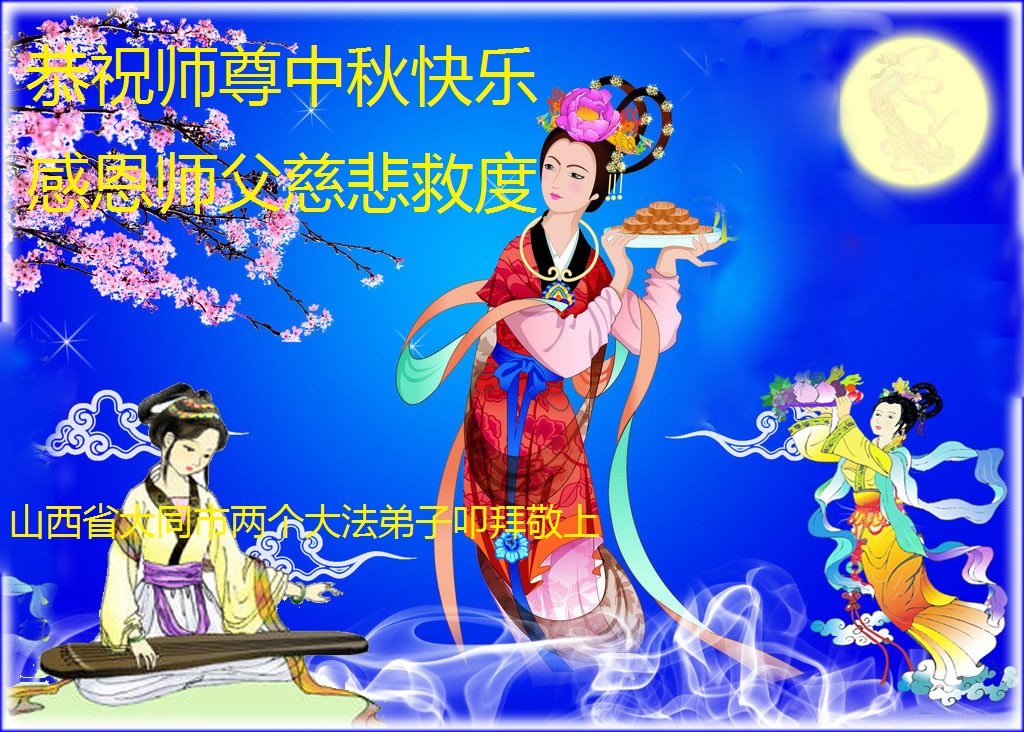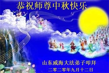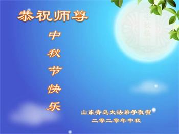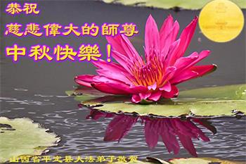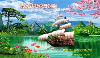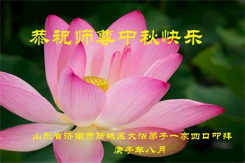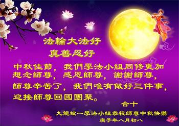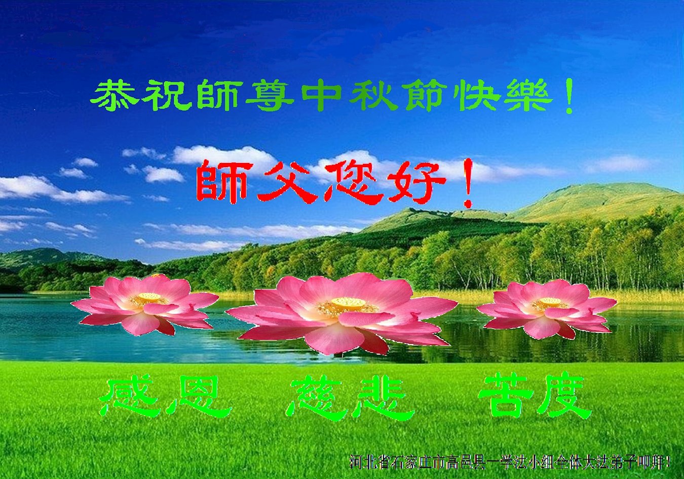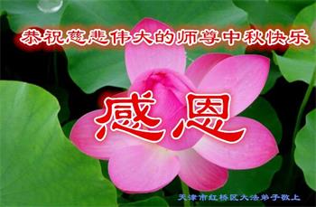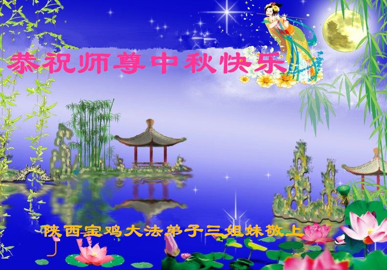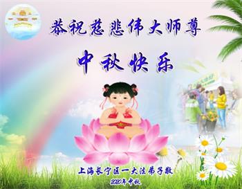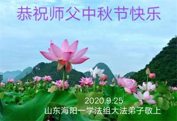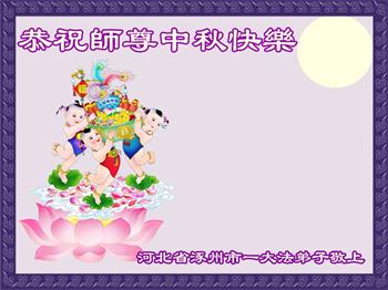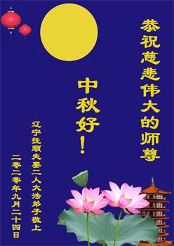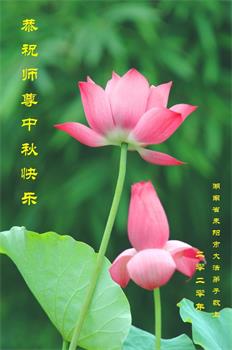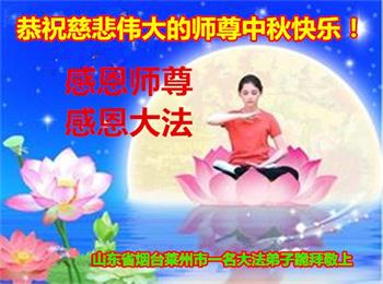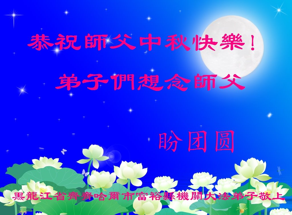 中国民众在贺词中写道:在中秋节来临之际,感恩大法师父的慈悲保护!我们盼望您早日回归中土,恩泽百姓,让亿万个家庭解开中共的枷锁,让中华民族五千年的文明在中原再现。