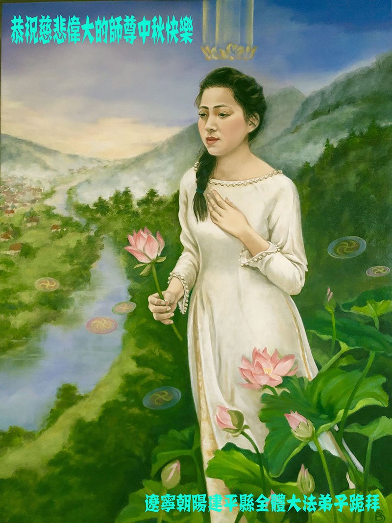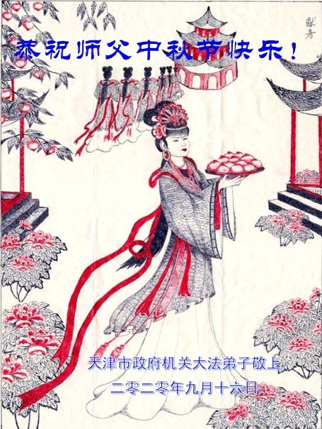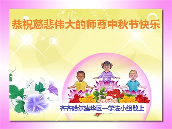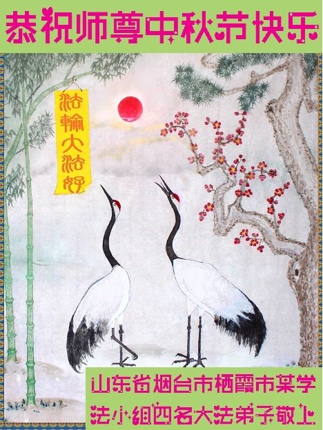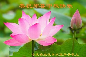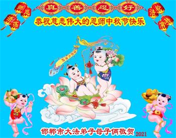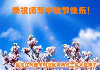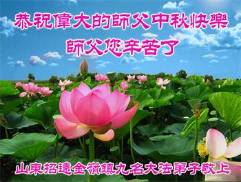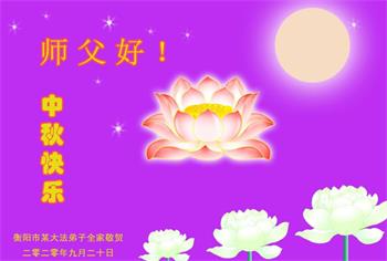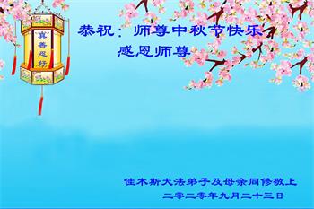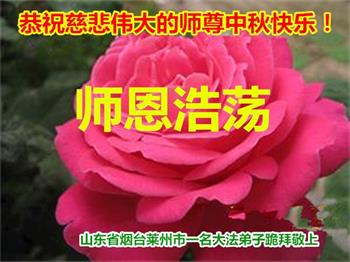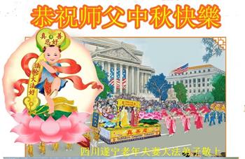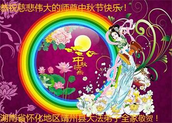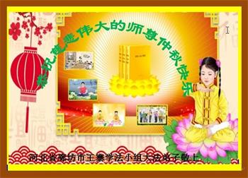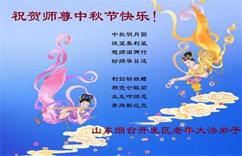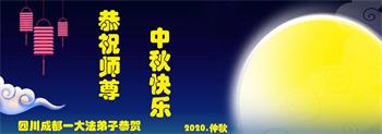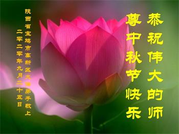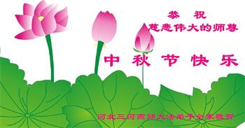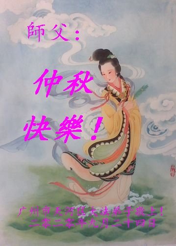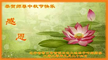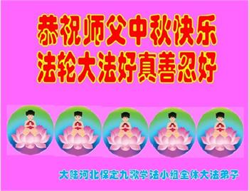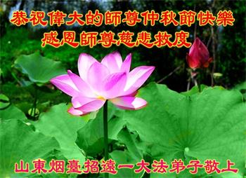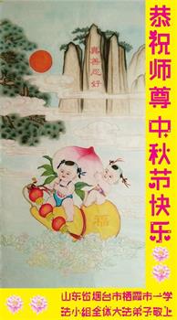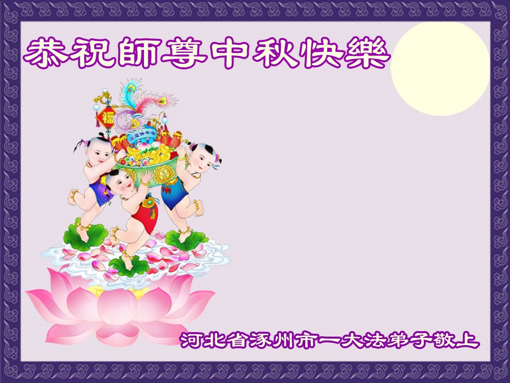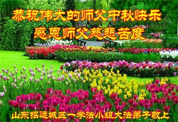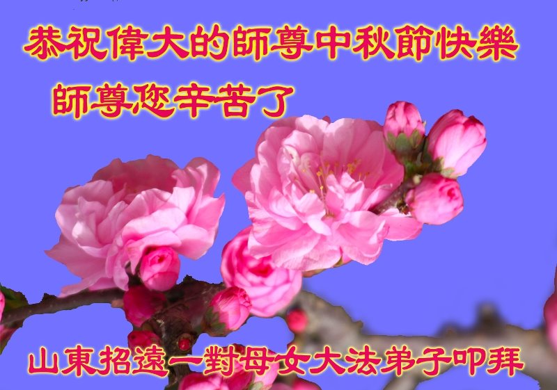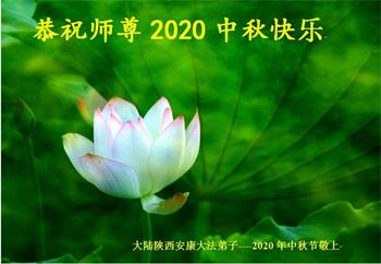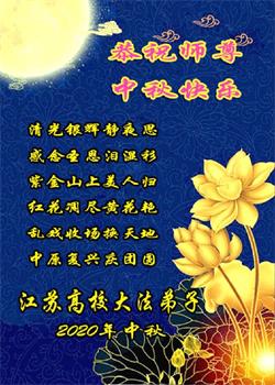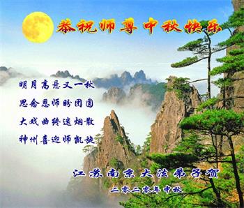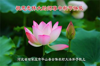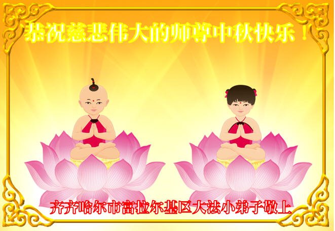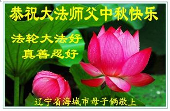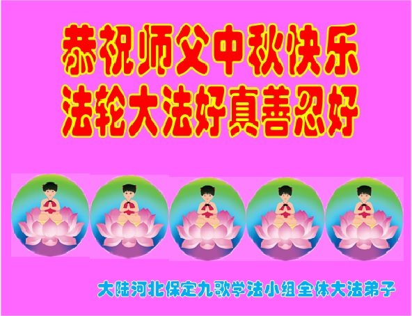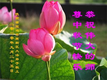 中国民众在贺词中写道:在中秋节来临之际,感恩大法师父的慈悲保护!我们盼望您早日回归中土,恩泽百姓,让亿万个家庭解开中共的枷锁,让中华民族五千年的文明在中原再现。