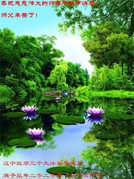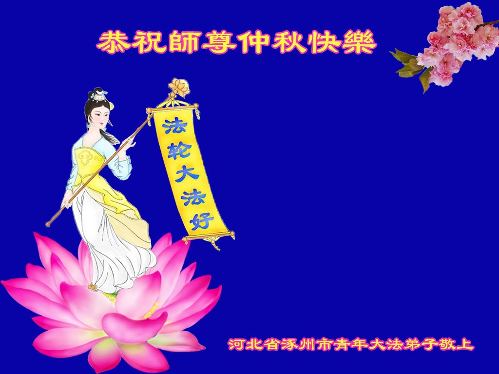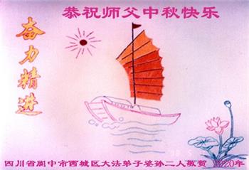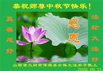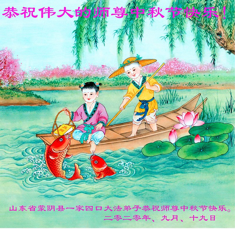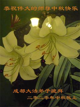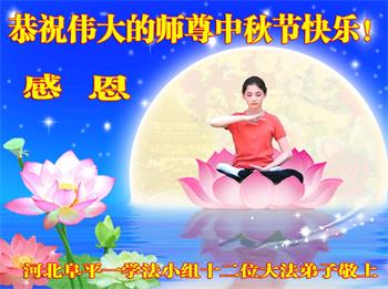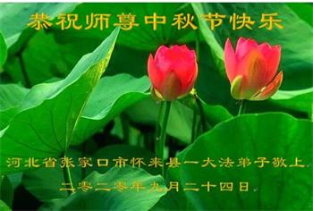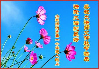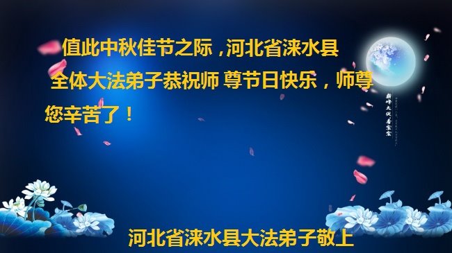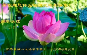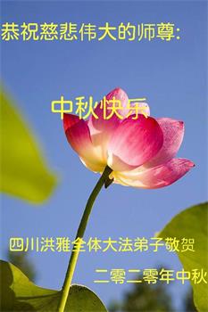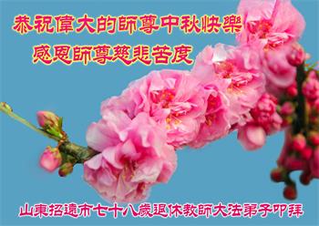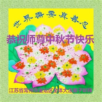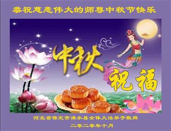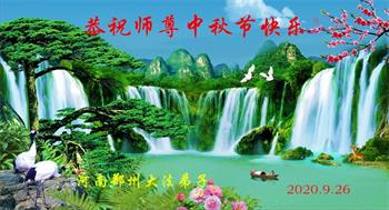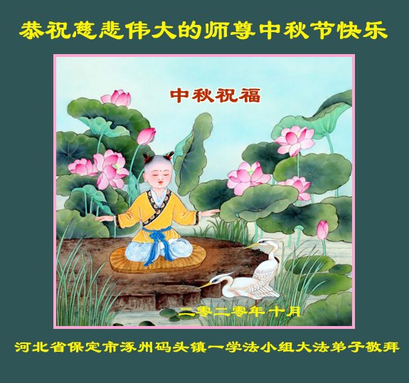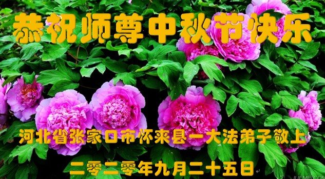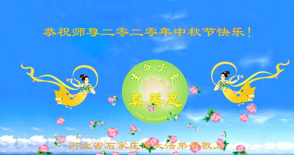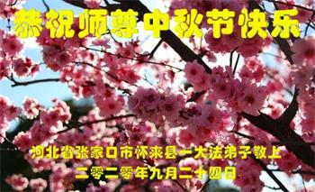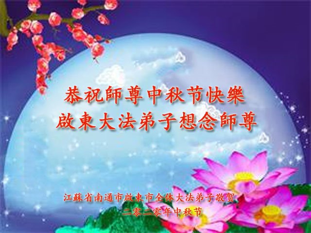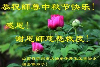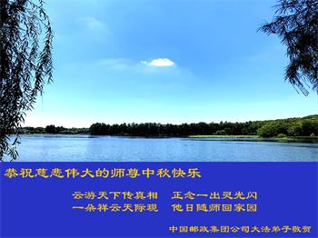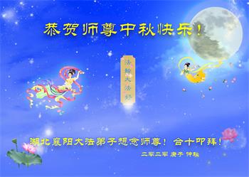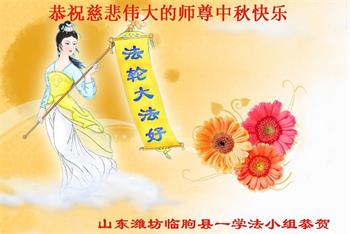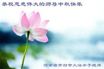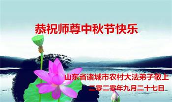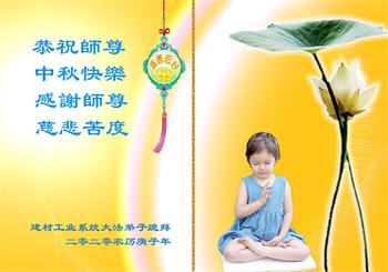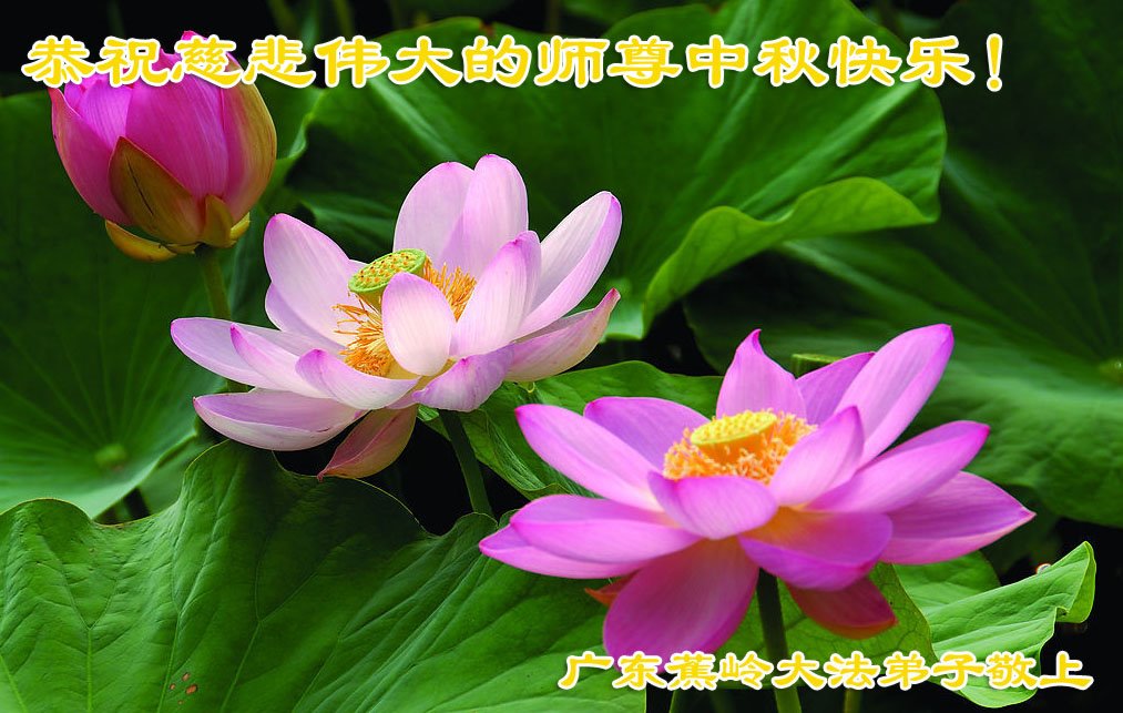 中国民众在贺词中写道:在中秋节来临之际,感恩大法师父的慈悲保护!我们盼望您早日回归中土,恩泽百姓,让亿万个家庭解开中共的枷锁,让中华民族五千年的文明在中原再现。
