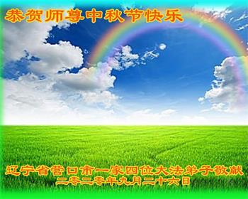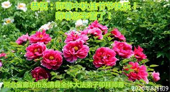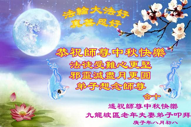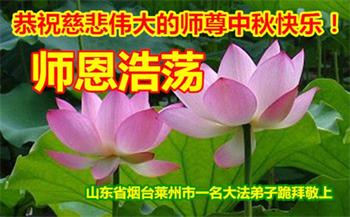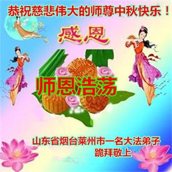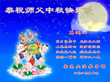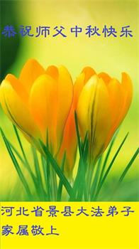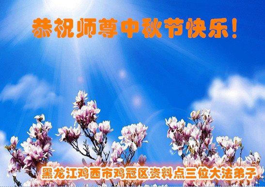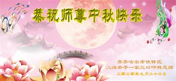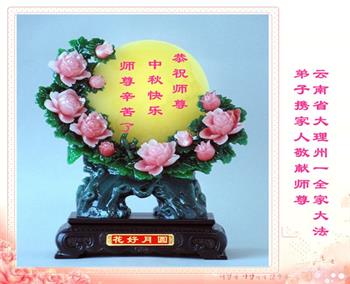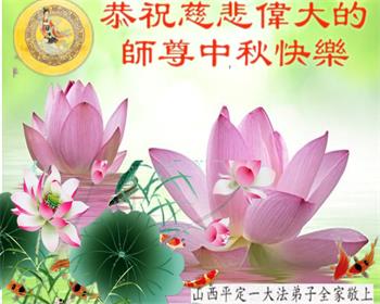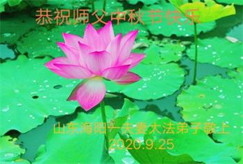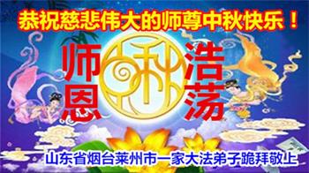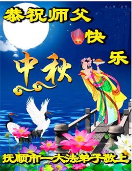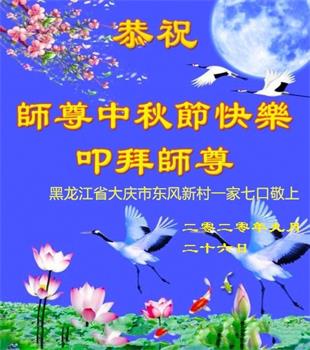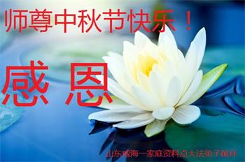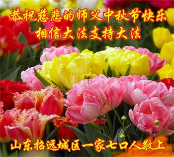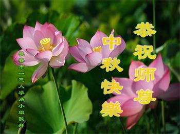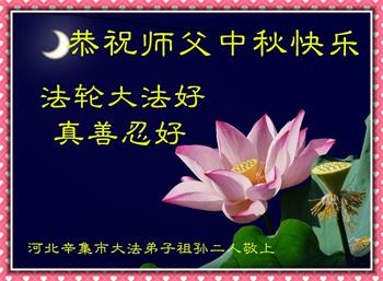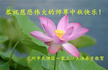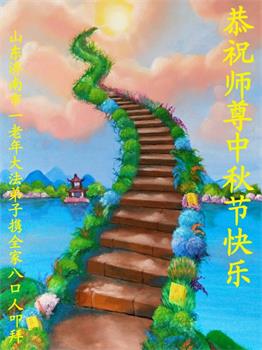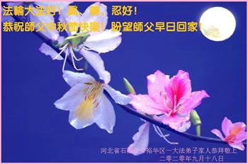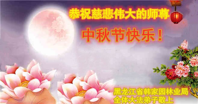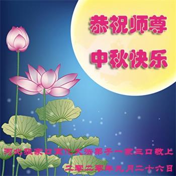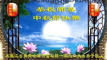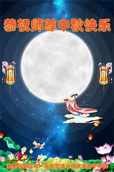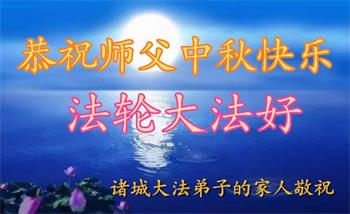作为大法弟子家属在此恭祝师父中秋节快乐!这些年我们见证了中共邪党的邪恶,也见证了法轮大法的伟大,希望真相早日大白于天下!