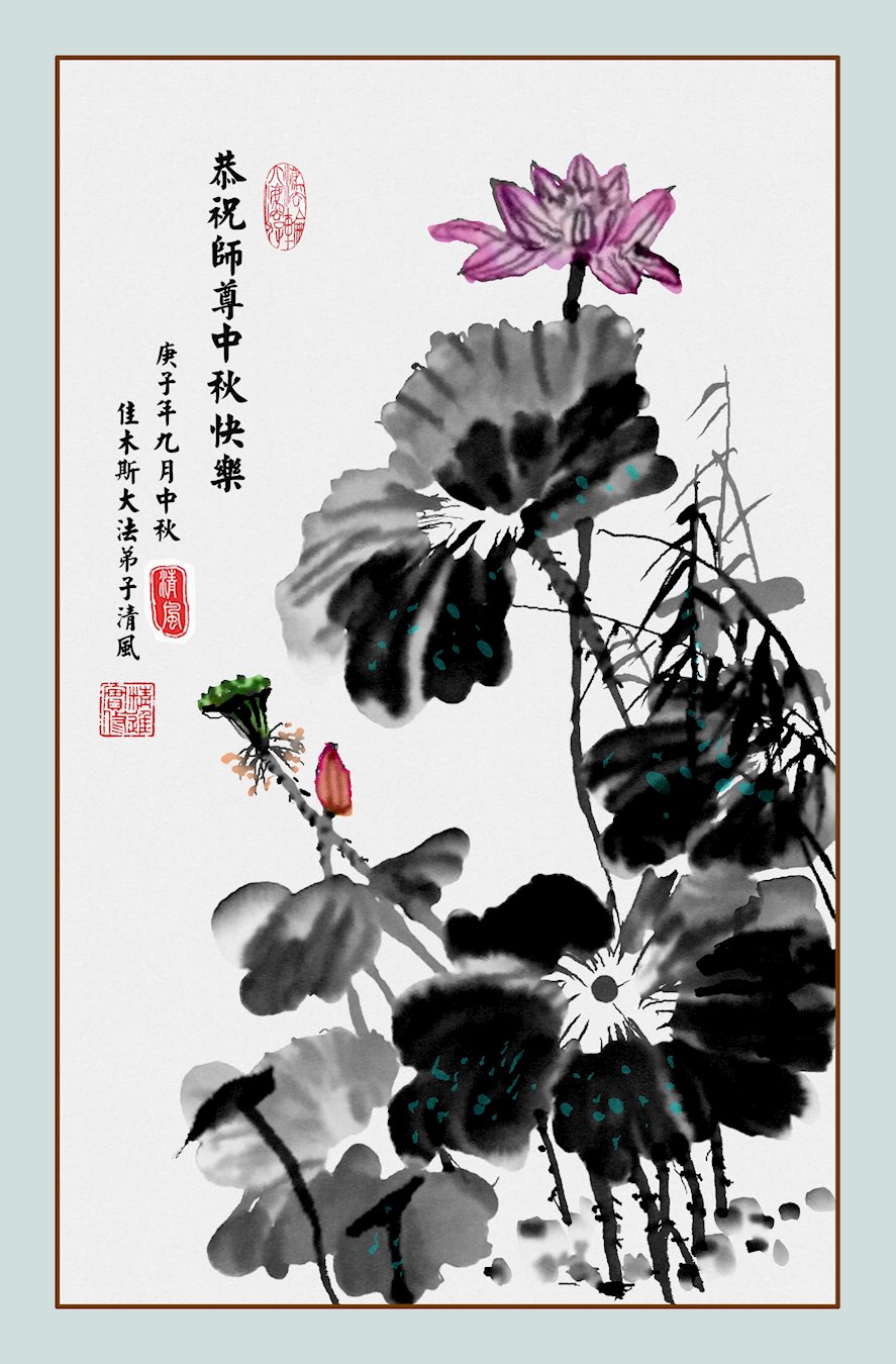 在此我们全家在中秋节来临之际,感恩大法师父的慈悲看护!恭祝大法师父中秋节快乐!