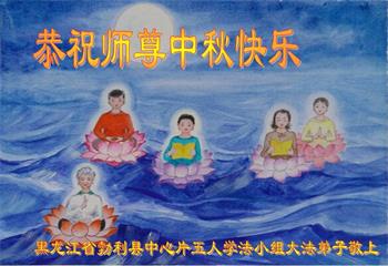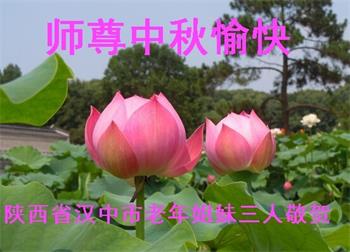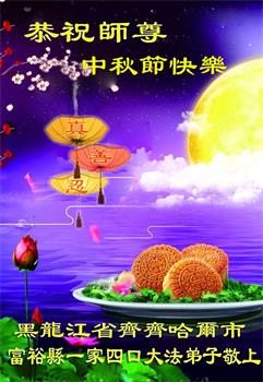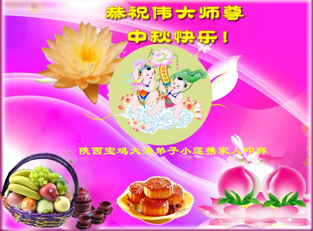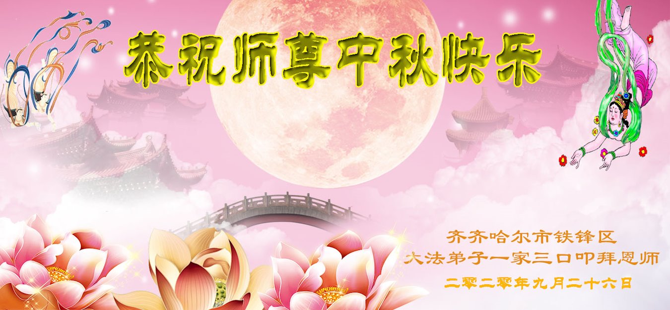 大法小弟子和父母同修及明白真相的家人恭祝伟大的师尊中秋节快乐!