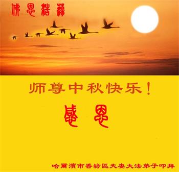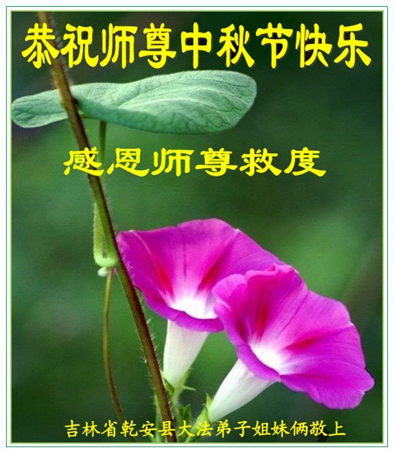 中秋节来临,今天我和丈夫表达心愿,一同说出:“祝法轮功师父中秋节快乐!法轮大法好!”