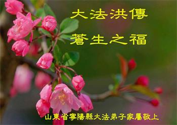 我们从大法弟子身上看到了大法的神奇和美好,法轮功弟子的慈悲和善良感召着周围的人们,使我们生活的环境充满了祥和,你争我夺的事情几乎不再有,人们都是互相帮助,互相尊敬。我们从内心感谢慈悲伟大的李大师,使我们也有机会沐浴佛光,能够得到您的慈悲眷顾!