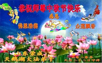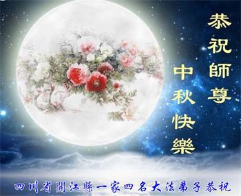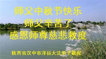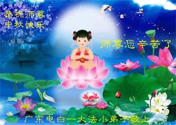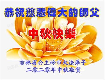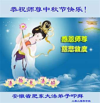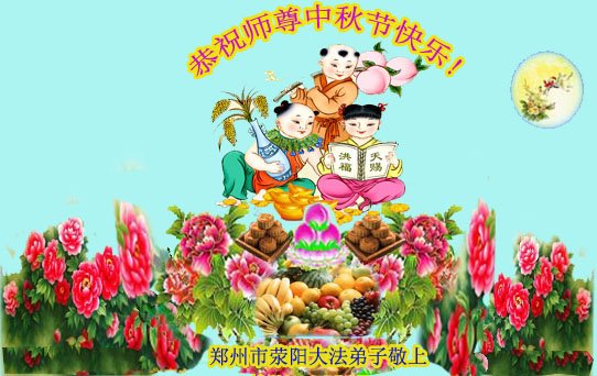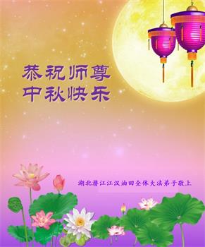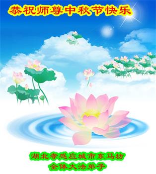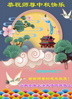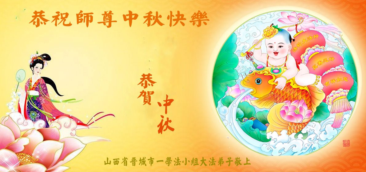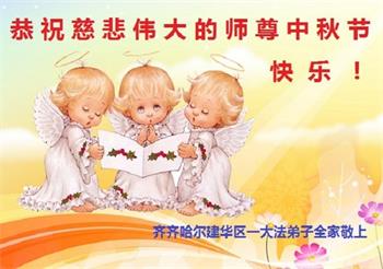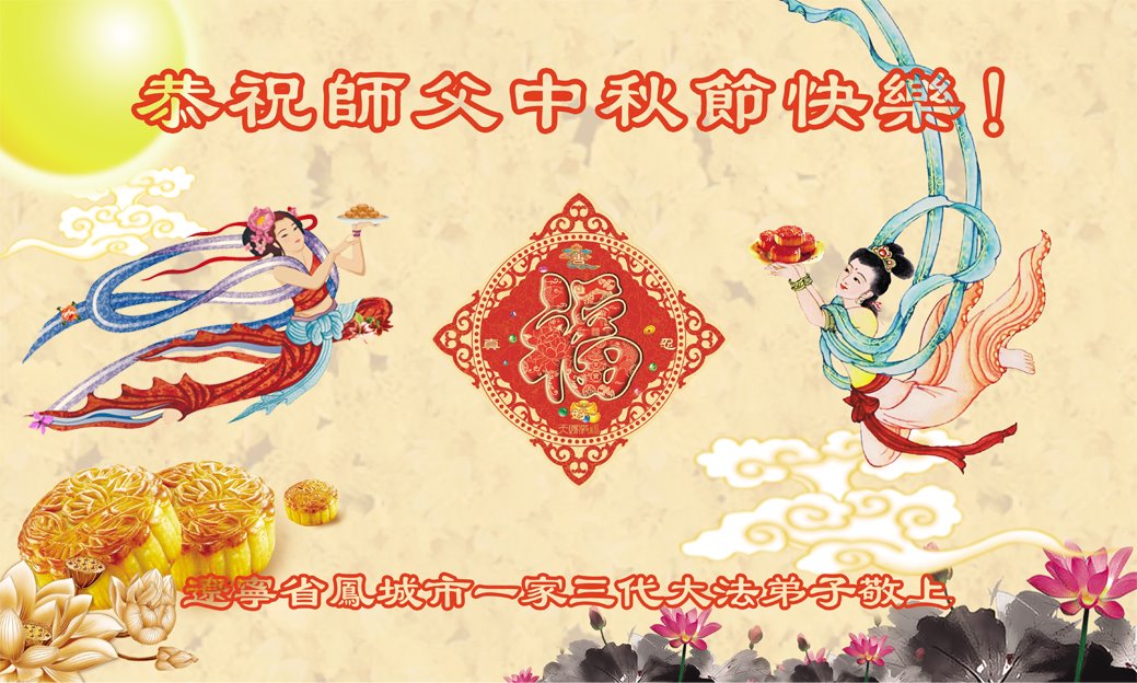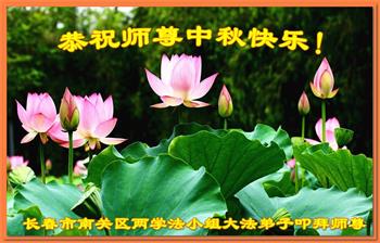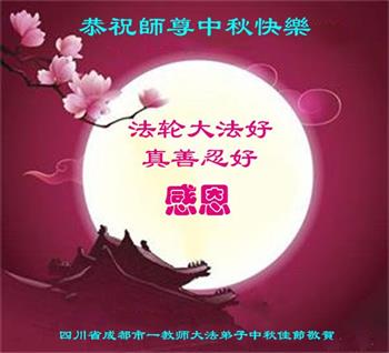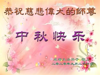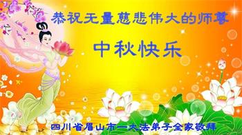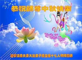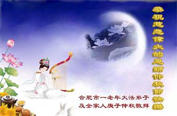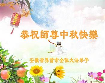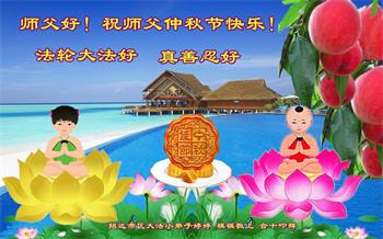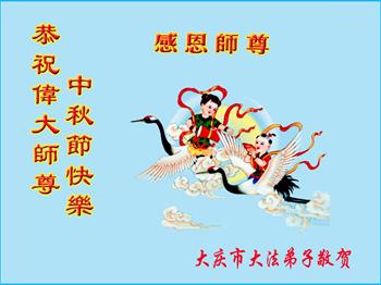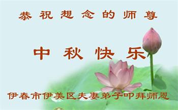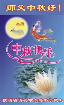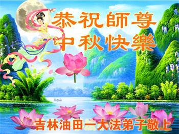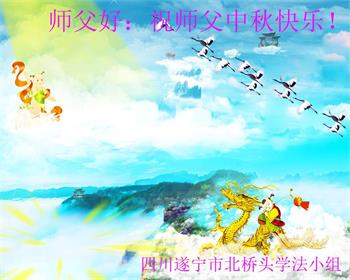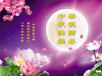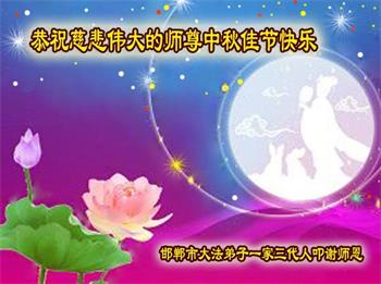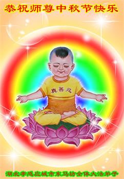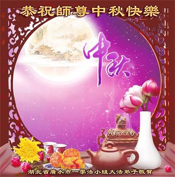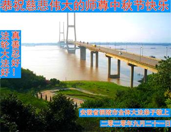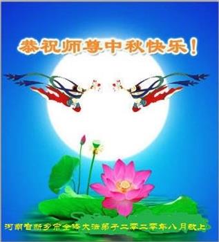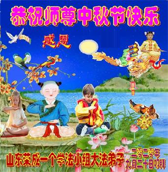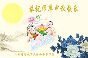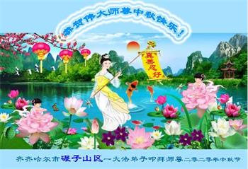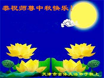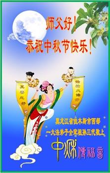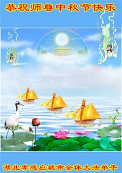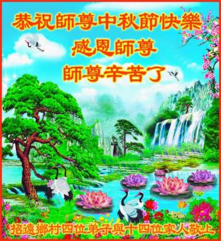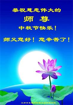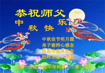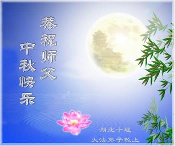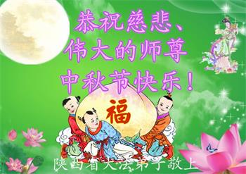 慈悲伟大的师尊您好!中秋节快乐!中铁第十一工程局的全体大法弟子远在中国大陆在中秋节前夕,弟子们向您献上无限的敬仰和感激之心!弟子们修炼二十多年了,我们一定继续坚持实修,抓紧这最后的、可贵的、亘古难遇的宇宙更新的大好时机,一如既往的、精進的做好师尊要求的“三件事”,净心多学法、净心多发正念,去掉弟子们各自的各种执着心,从而慈悲的讲清真相,多多的救下世上还存有善念的世人。