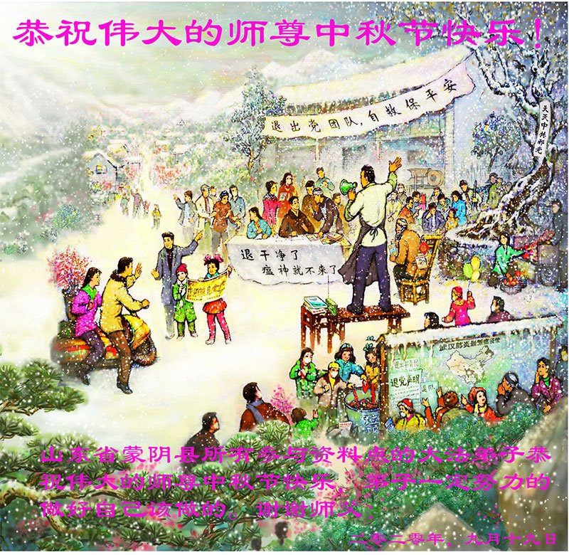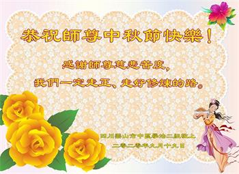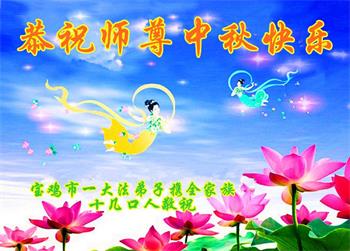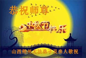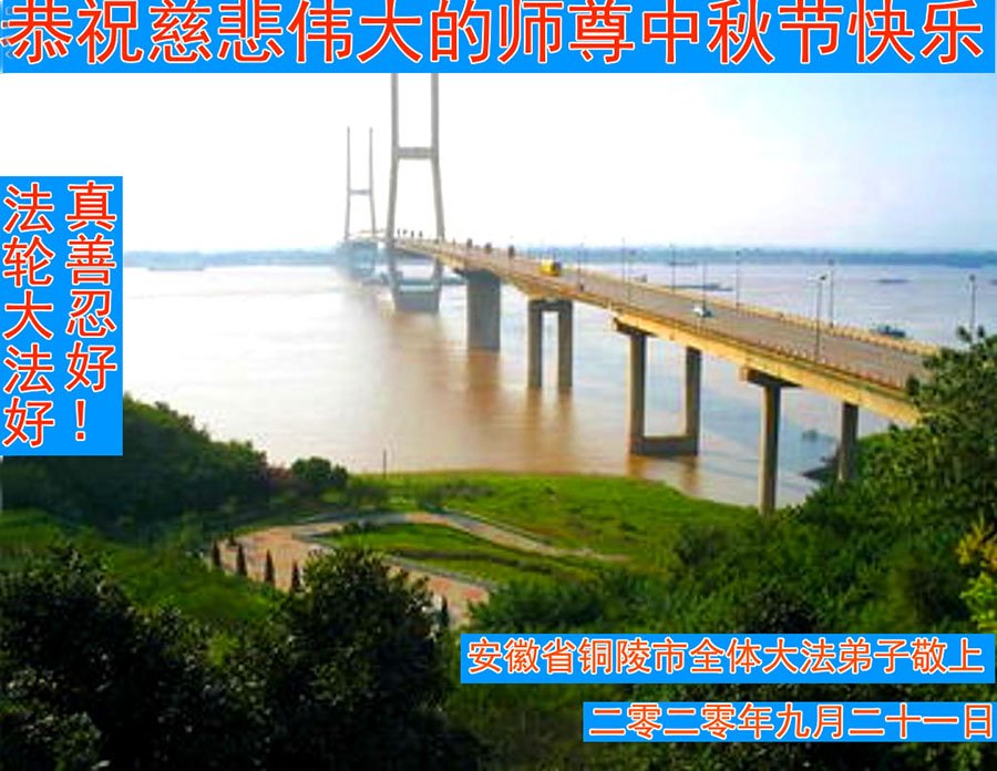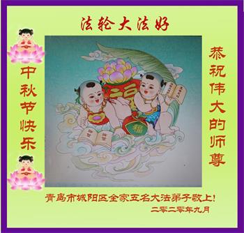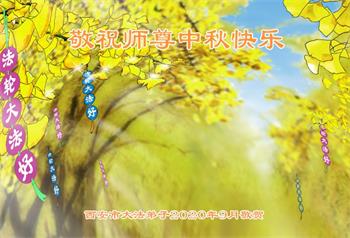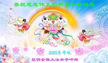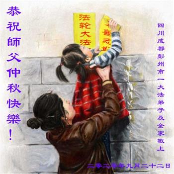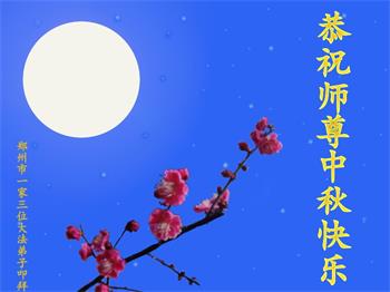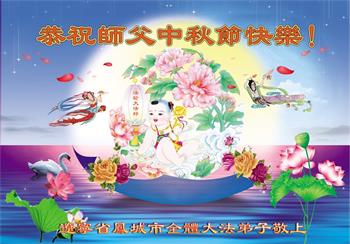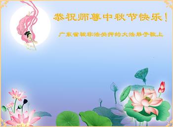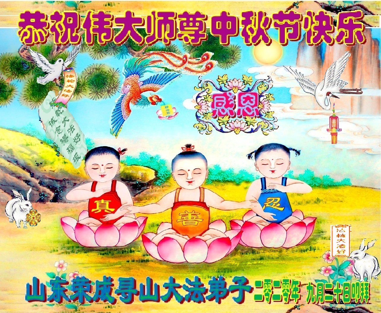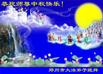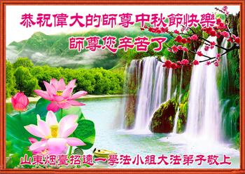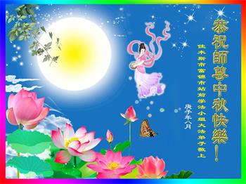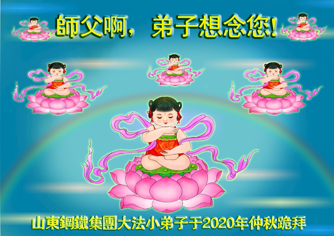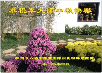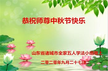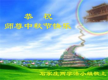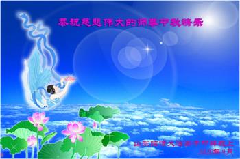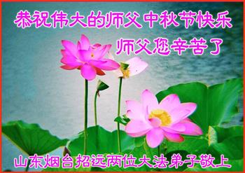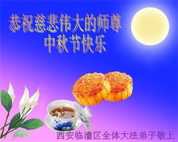 慈悲伟大的师尊您好!中秋节快乐!中铁第十一工程局的全体大法弟子远在中国大陆在中秋节前夕,弟子们向您献上无限的敬仰和感激之心!弟子们修炼二十多年了,我们一定继续坚持实修,抓紧这最后的、可贵的、亘古难遇的宇宙更新的大好时机,一如既往的、精進的做好师尊要求的“三件事”,净心多学法、净心多发正念,去掉弟子们各自的各种执着心,从而慈悲的讲清真相,多多的救下世上还存有善念的世人。