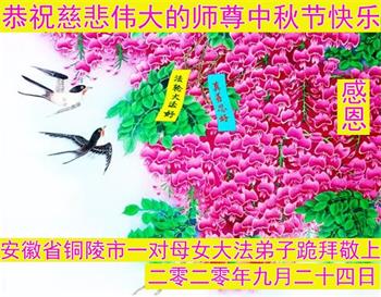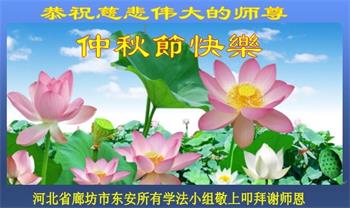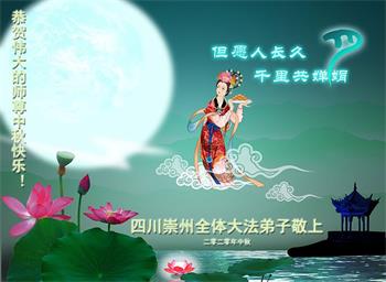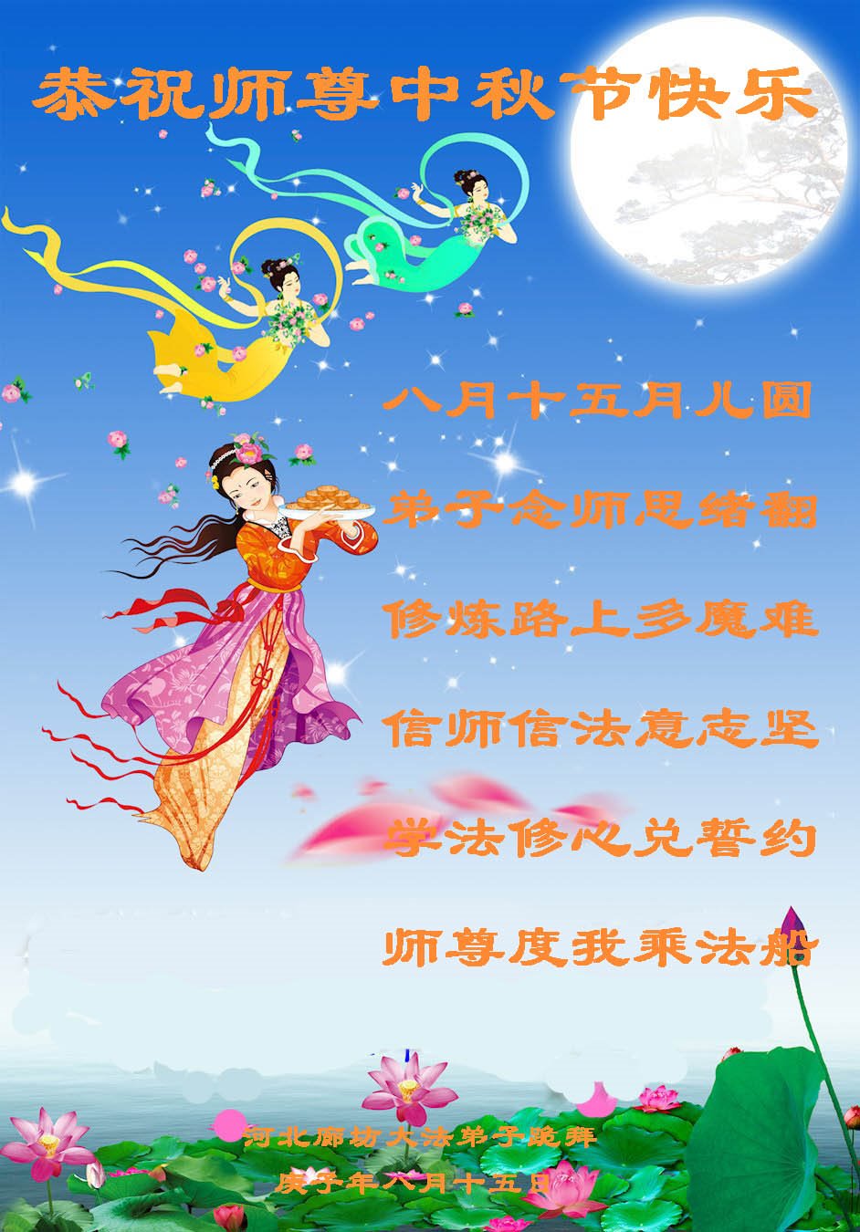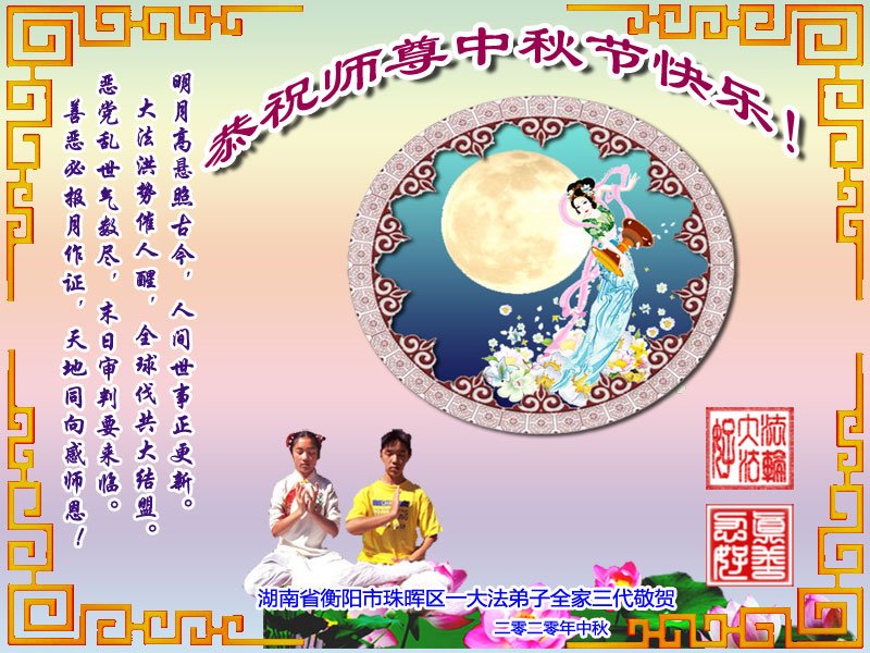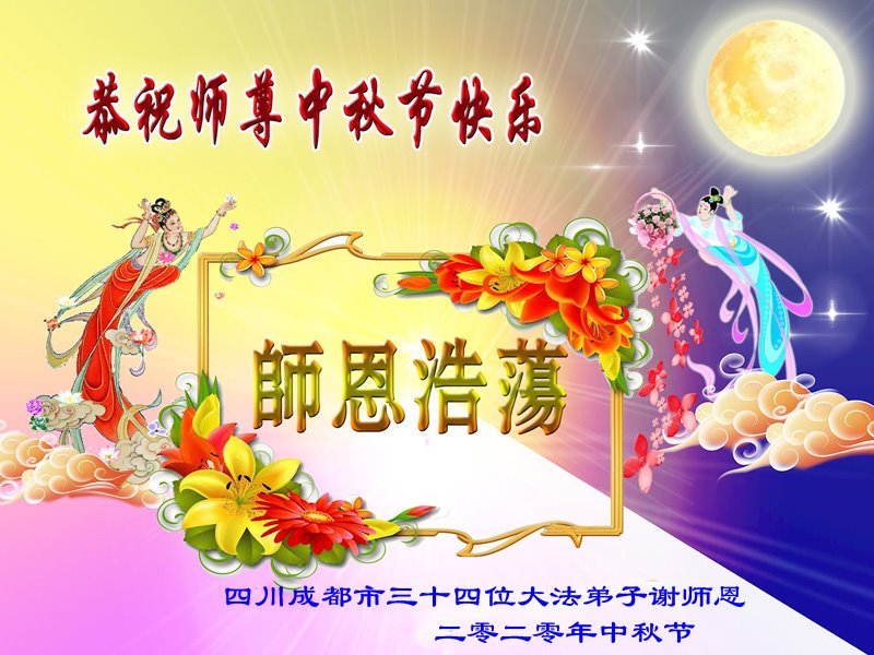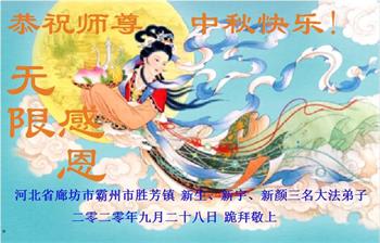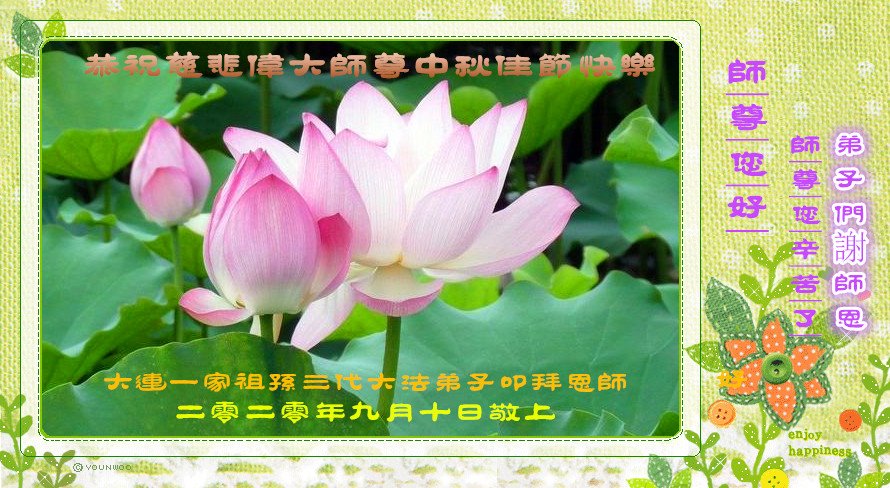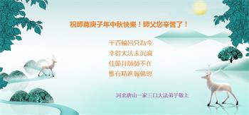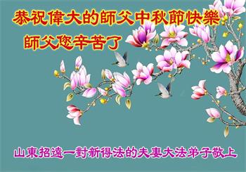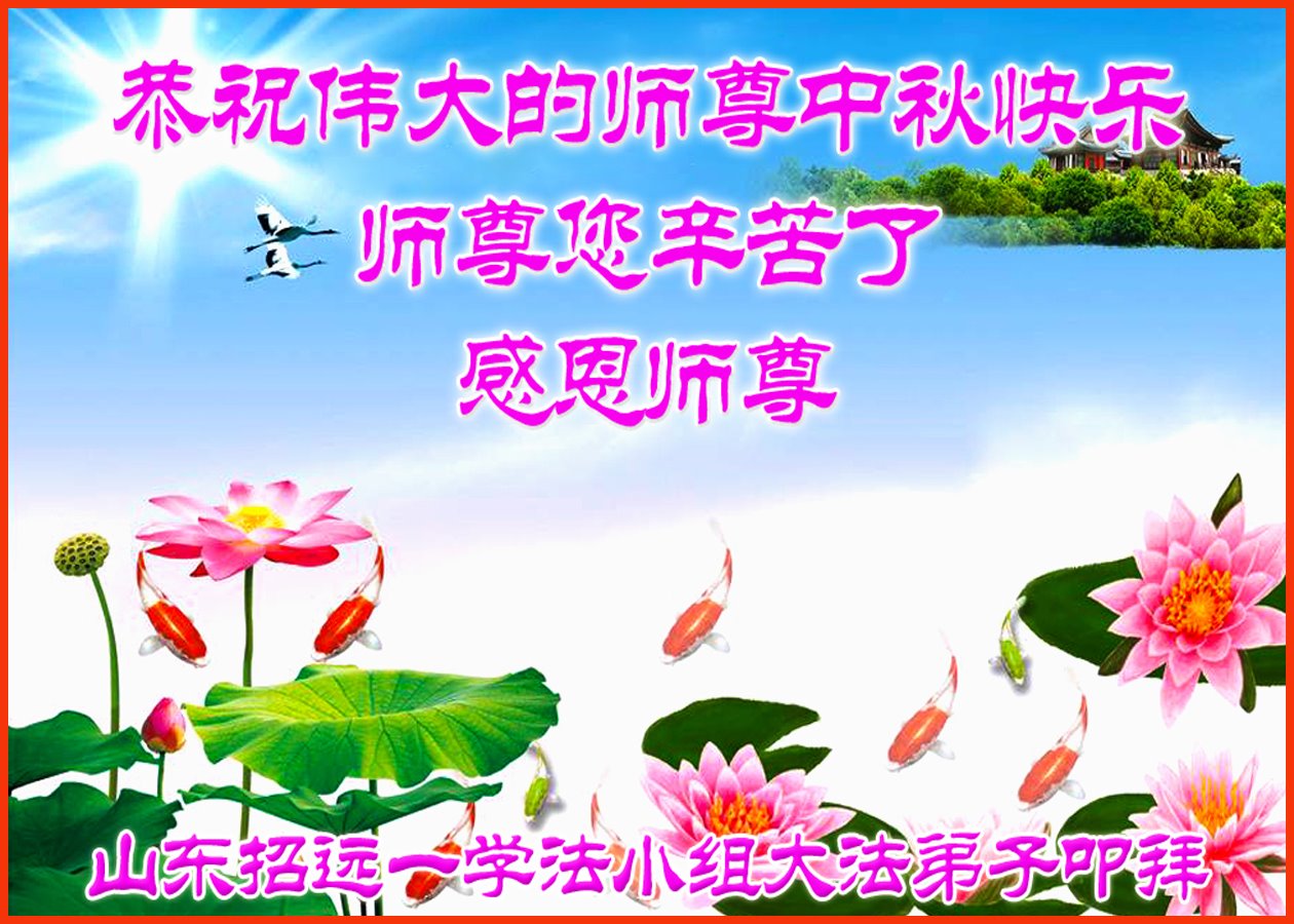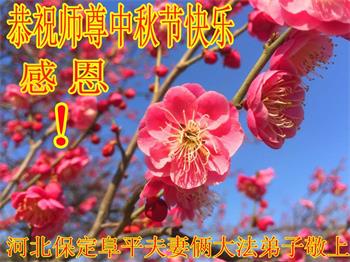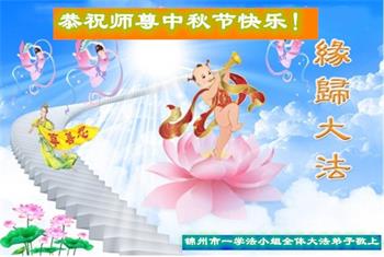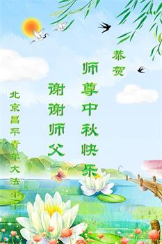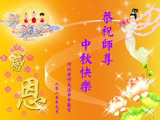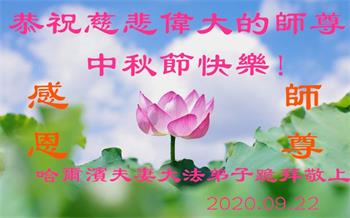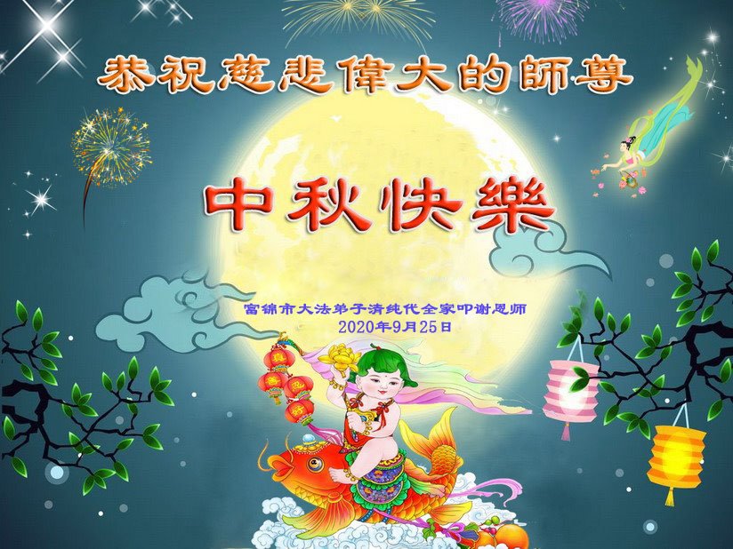 在2020年中秋节即将到来之际,我们夫妻大法弟子恭祝师尊中秋节快乐!我们是北京的一对教师大法弟子。1999年邪党迫害大法之后,我们坚定修炼,都失去了正式工作,但在师父的保护下,我们创办了文化公司,到农村、大学、小学、幼儿园等弘扬传统文化,10年间使几十所学校的师生受益。我们也有了稳定的工作,2020年还住進了翻盖的新房,得到了邻居的赞扬,这都是意想不到的事情,这是恩师的赐予,我们夫妻感谢师父慈悲苦度!
