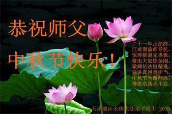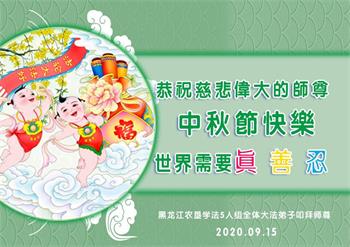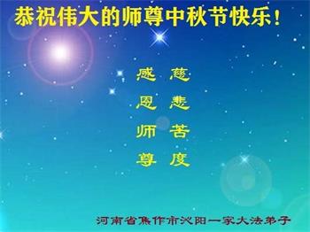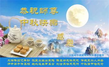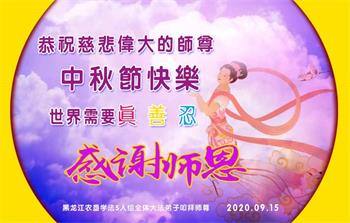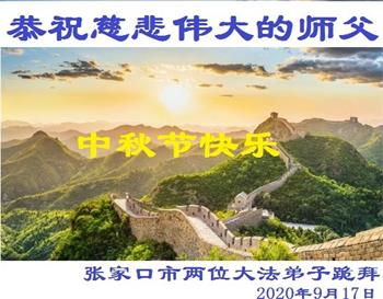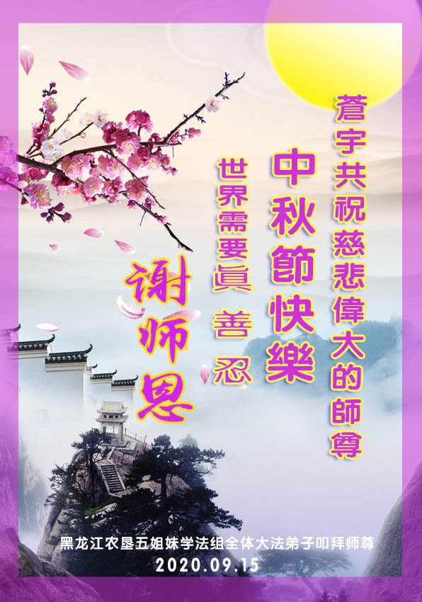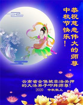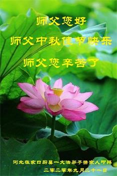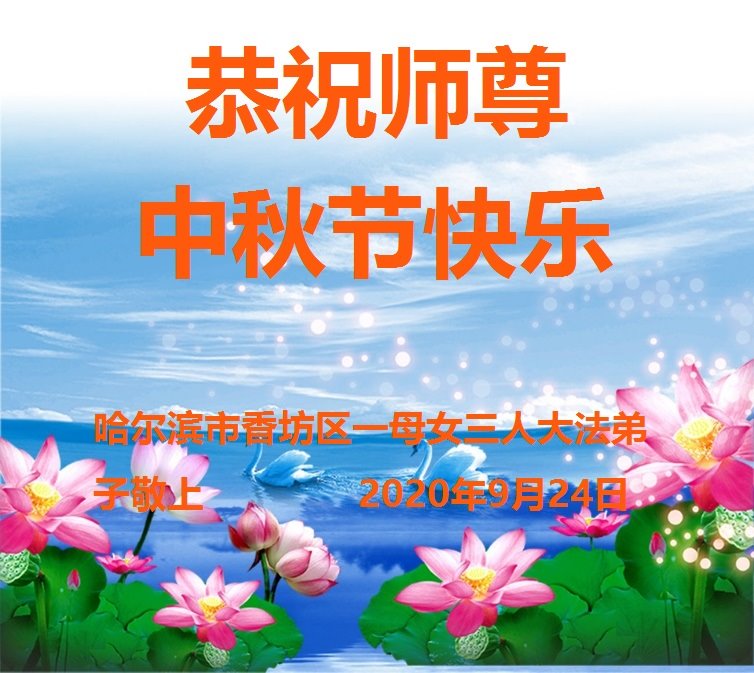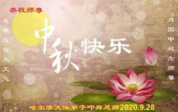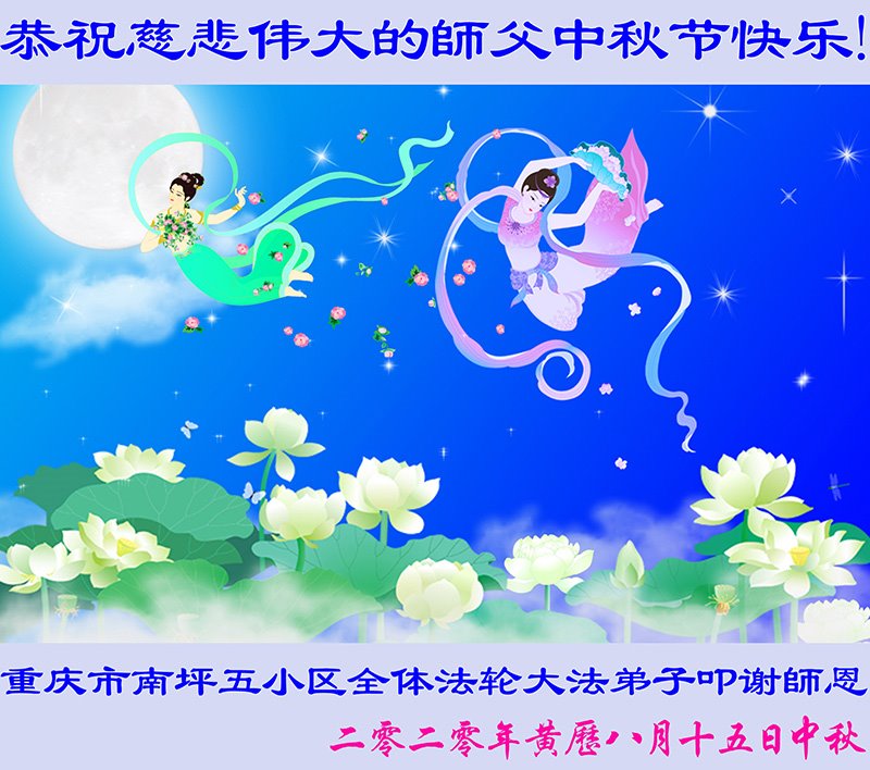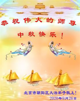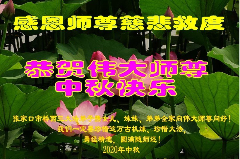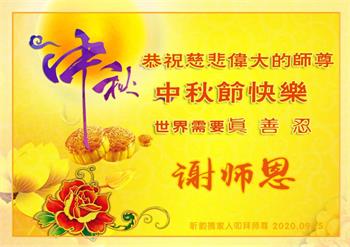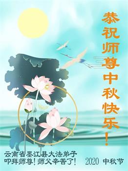 【明慧网二零二零年九月三十日】(明慧网记者综合报道)法轮大法是佛法修炼,大法弟子们把师尊教导的真、善、忍标准溶入日常的生活、工作、修炼中,在各行各业中展现法轮大法的美好。2020年中秋佳节来临,来自中国大陆各行业的大法弟子恭祝慈悲伟大的师尊中秋节快乐!