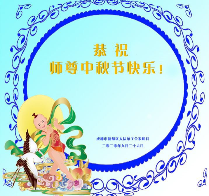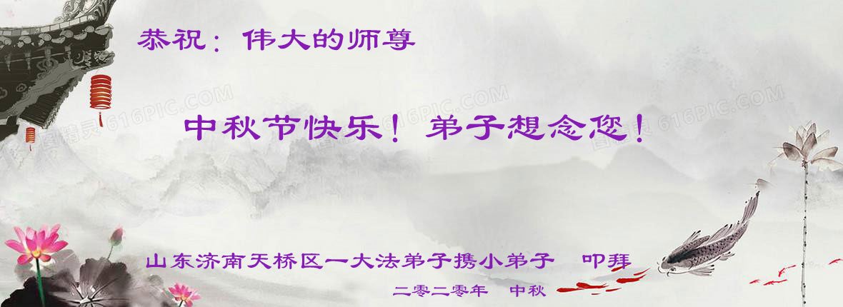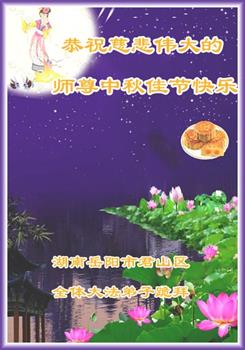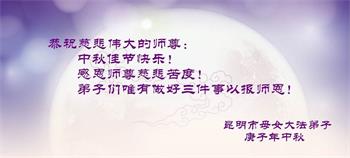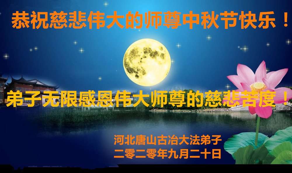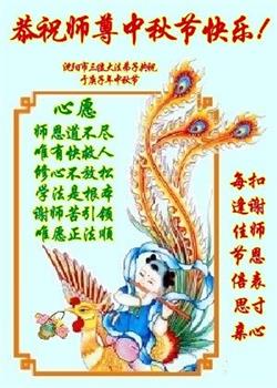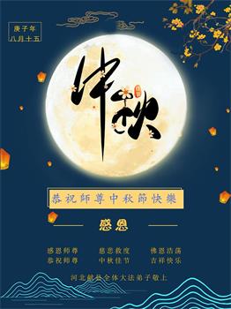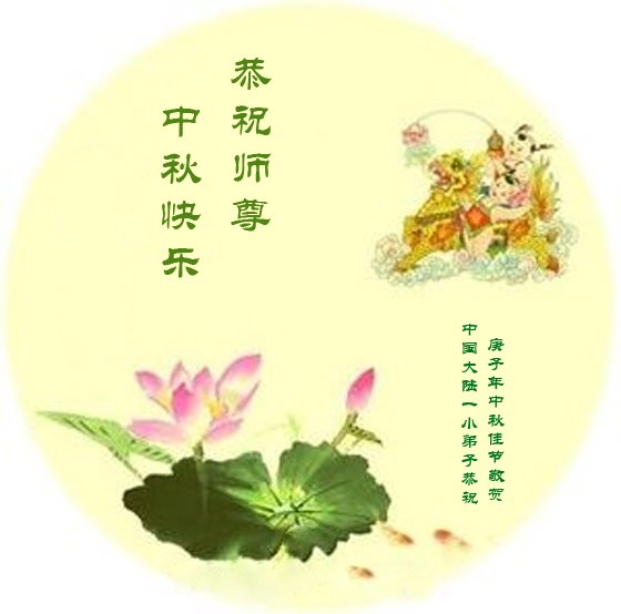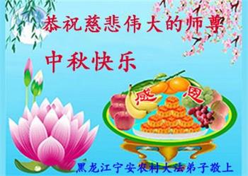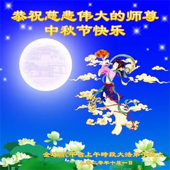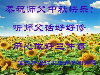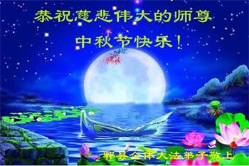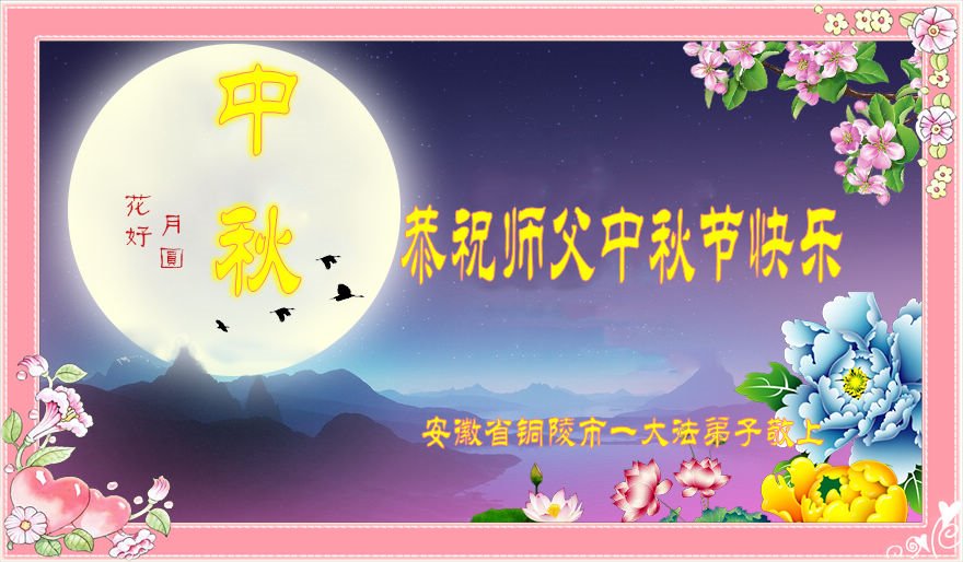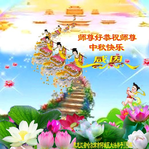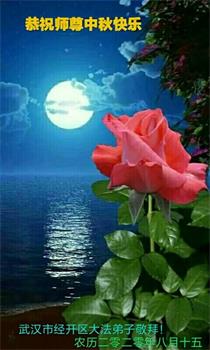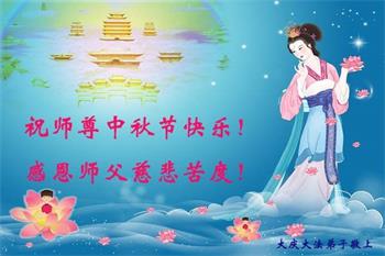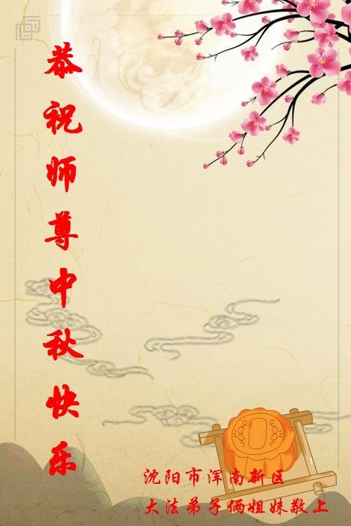 值此中秋佳节来临之际,弟子恭祝慈悲伟大的师尊中秋节快乐!在剩下的宝贵时间里,弟子一定牢记史前助师正法的神圣使命,走正走好修炼路,把大法救度的福音送到千家万户,让更多的众生得到大法的救度,愿师尊少一些操劳,多一份欣慰,惟愿师尊笑!
