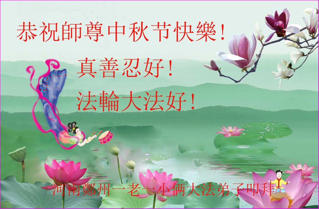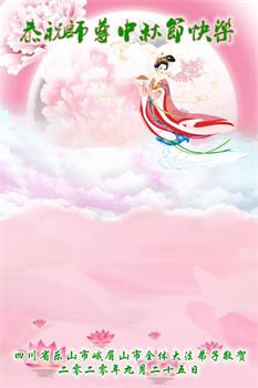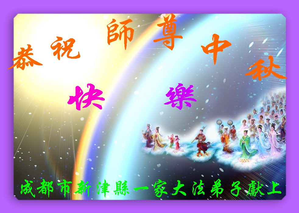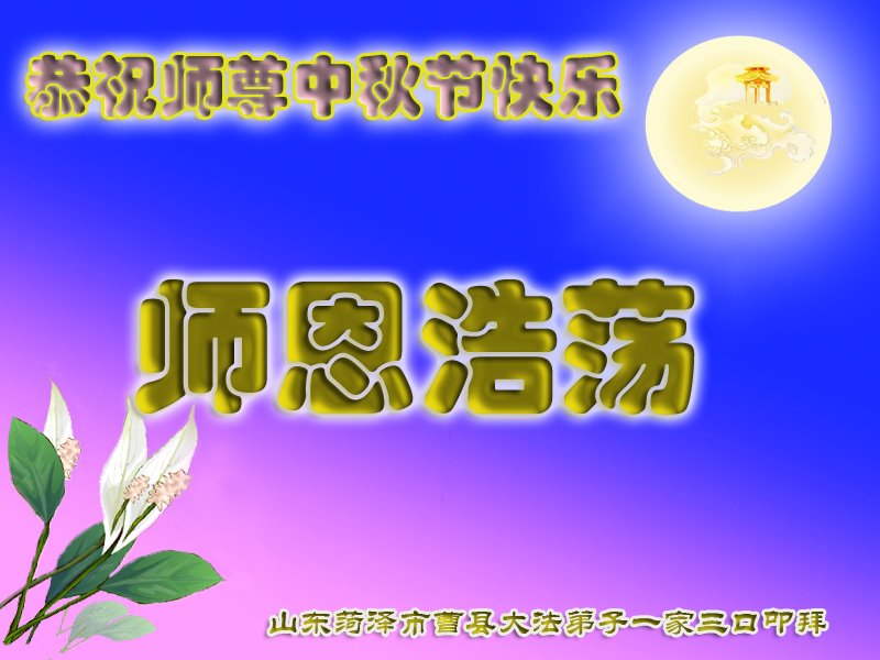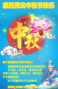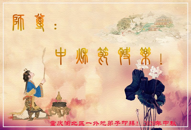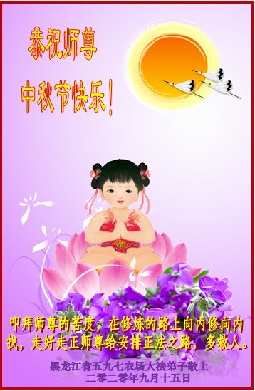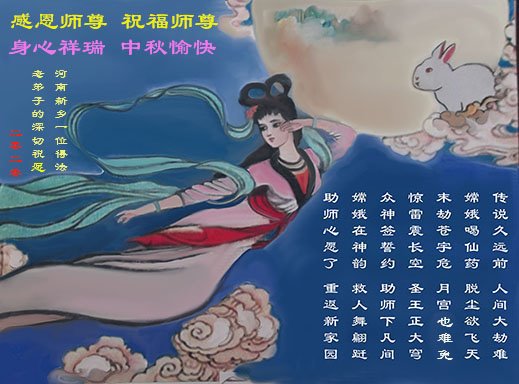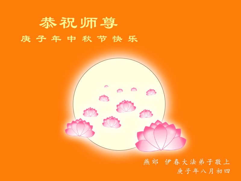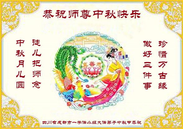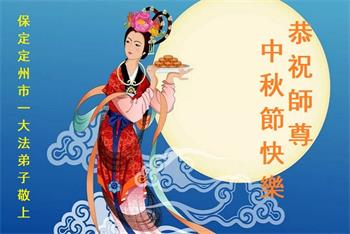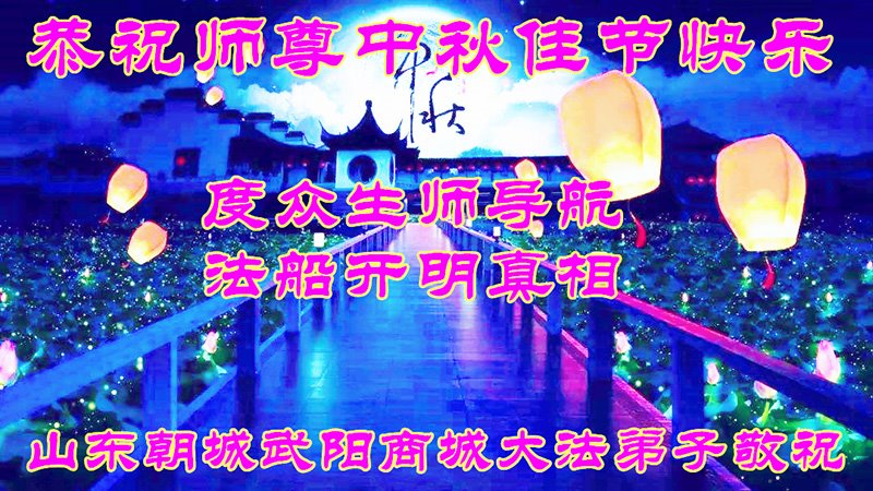 值此中秋佳节来临之际,弟子恭祝慈悲伟大的师尊中秋节快乐!在剩下的宝贵时间里,弟子一定牢记史前助师正法的神圣使命,走正走好修炼路,把大法救度的福音送到千家万户,让更多的众生得到大法的救度,愿师尊少一些操劳,多一份欣慰,惟愿师尊笑!