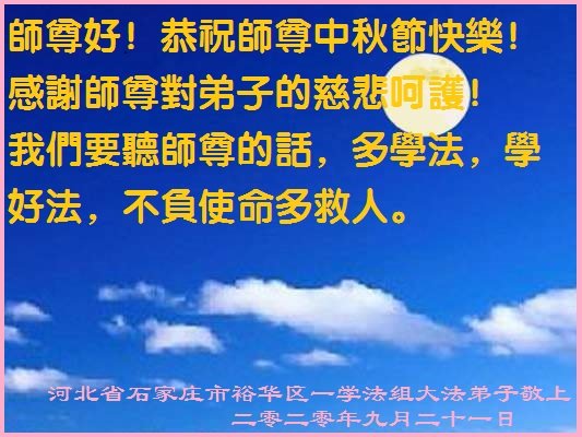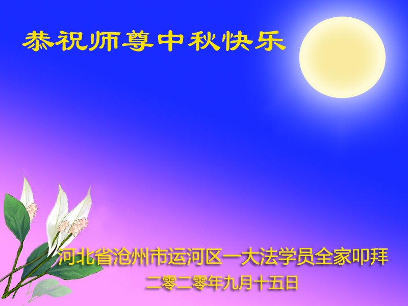 中秋佳节来临之际,内蒙古教育系统全体大法弟子恭贺师尊中秋佳节好!借此也表达我们对师尊的感恩之心。
