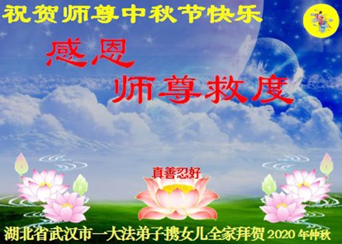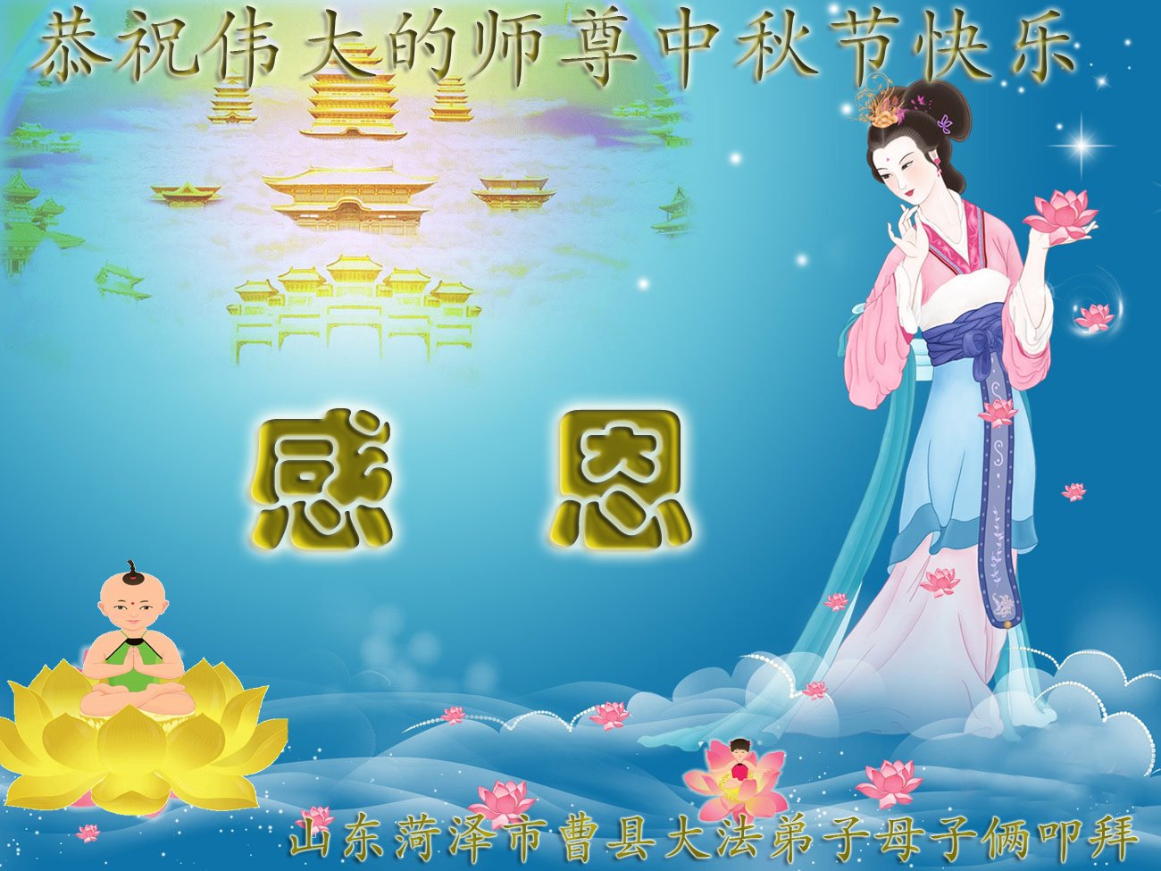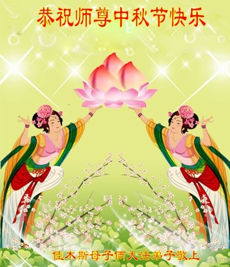 在这时刻,人间任何美好的词句都表达不尽弟子对师尊的感恩,弟子倍感这一刻值千金,值万金,只有抓紧时间精進实修,做好三件事,多救世人,以报师恩,圆满随师还。在此我和我的女儿恭祝师尊中秋节快乐!