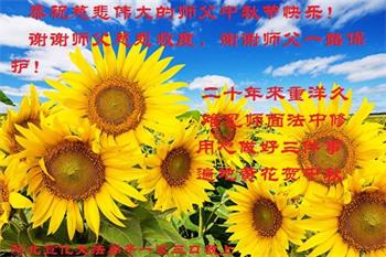 今生今世弟子能够在大法中修炼,内心的幸福和荣耀是无与伦比的!弟子一定不负师尊厚望,继续努力的做好三件事,让更多的生命明白真相,为自己及家人选择一个美好光明的未来!