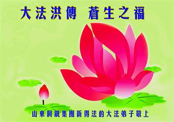 山东省济南市历下区卫生系统全体大法弟子表示:“人生能遇大法在世间洪传,是何等的幸运,千万年的期盼今朝了愿。弟子只有信师信法,精進实修,兑现誓约。”