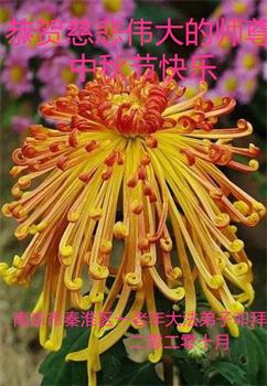 是师父的巨大承受,才使我们又迎来了一个团圆、温馨的中秋,弟子们怀着感恩的心,恭祝恩师中秋佳节快乐!弟子感恩师尊和大法神奇伟大,非为一般言辞所能表达。历史走到今天的关键时刻,天灭中共正在進行时,当初疯狂嚣张一时的江氏流氓集团已是四面楚歌,天灭中共大势所趋!