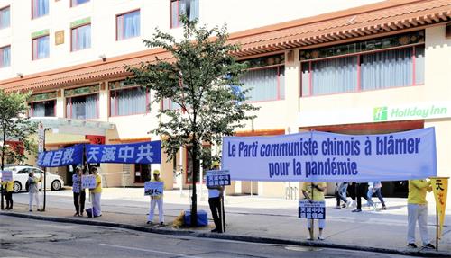 【明慧网二零二零年九月七日】二零二零年九月五日,蒙特利尔退党服务中心发起汽车游行,在蒙特利尔市中心向民众广传法轮大法好和天灭中共、三退保平安的真相福音。
