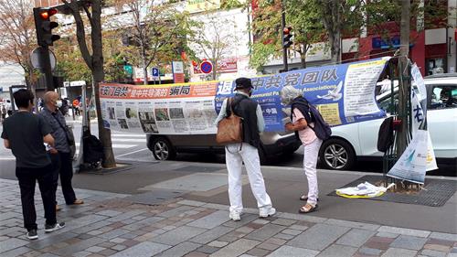 有一位亚裔女士路过时,随手拿了一张传单,她走出去很远了又折回来了,她说:“我是柬埔寨人,我要给你们签字,我非常知道它们(共产党)”。很多柬埔寨人经历了红色高棉的迫害,回忆起来是很痛苦的事。