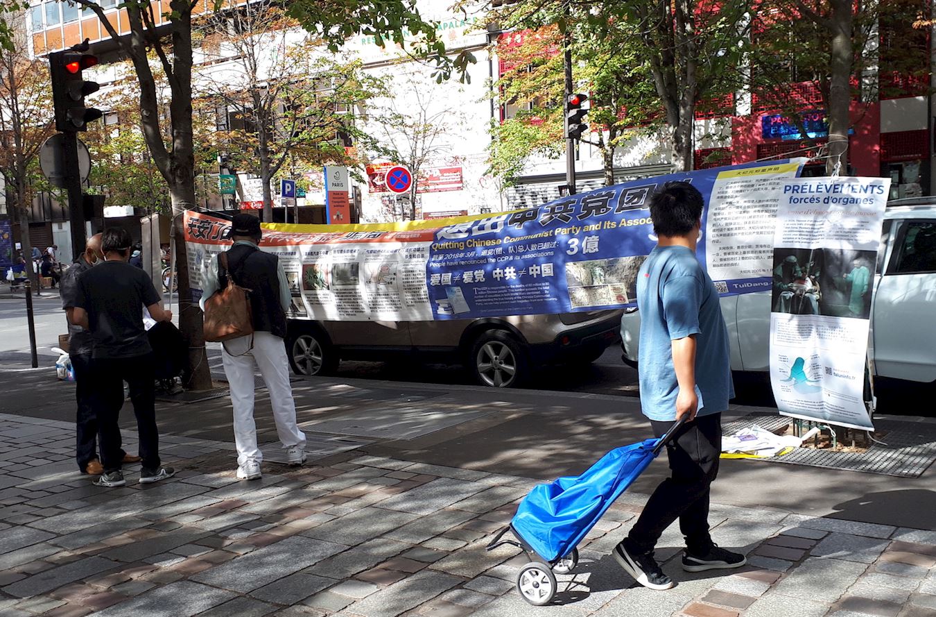 这位柬埔寨女士签字后,把征签表递给旁边正在看展板的几位法国女士,对她们说:“你们要给他们签,他们这都是真的,我就是证人,我就是被共产党迫害的。你们签吧,帮帮他们吧。”三个法国女士马上就签了字。
