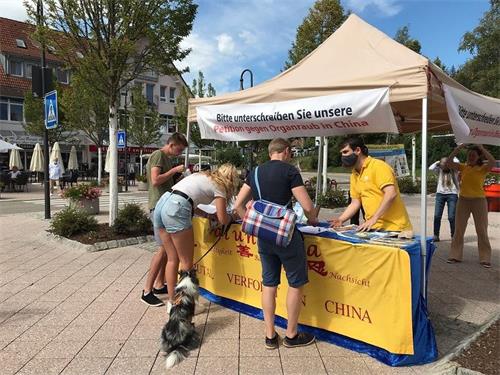 【明慧网二零二零年九月八日】二零二零年九月五日,法轮功学员再次来到德国南部黑森林里的缇缇湖(Titisee)景区,向来自各国的游客讲述中共迫害法轮功的真相,并征集签名,制止中共活摘器官的恶行。