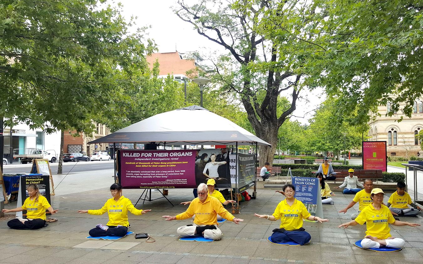 图1:阿德莱德部份法轮功学员展示法轮功功法,传播真相