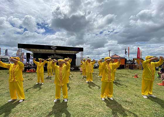 新西兰奥克兰部份法轮功学员们1月16、17日参加了库姆的经典老爷车展。法轮功学员组成的舞龙队和腰鼓队应邀到舞台中间的大草坪上表演。