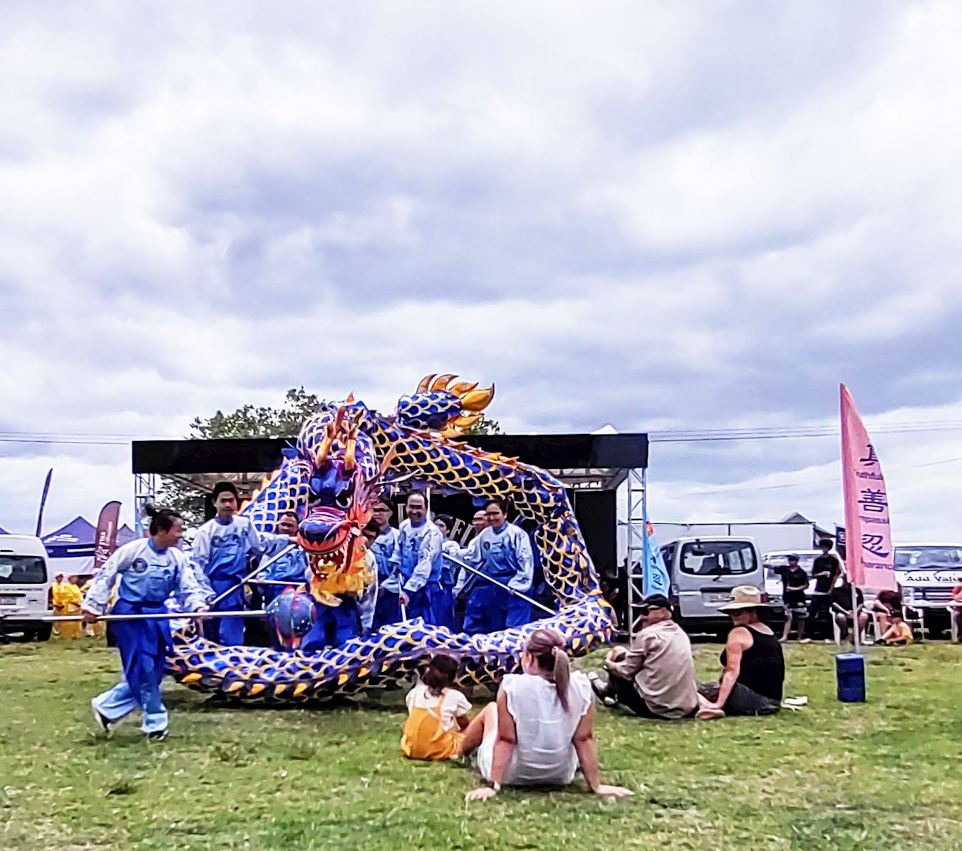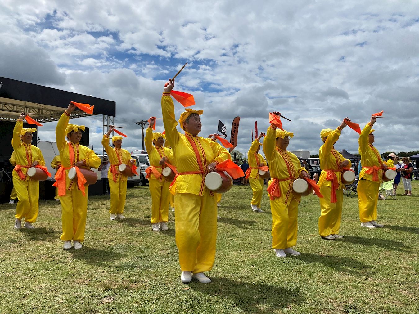 法轮功学员组成的舞龙队和腰鼓队,被邀请到了舞台中间的大草坪上表演。法轮功学员在舞台上介绍了什么是法轮大法,以及中共对秉持“真、善、忍”信仰的法轮功学员的残酷迫害,更呼吁人们认清中共,明白真相后的人们、此次展会的组织者以及工作人员们都纷纷签名支持法轮功反迫害。