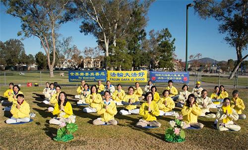 ![]() 图1~2:在二零二一年新年来临之际,圣地亚哥部份法轮大法弟子在米拉梅萨炼功点向师父恭祝新年。 |