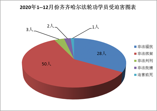 根据对明慧网报道的统计,2020年1月至12月,黑龙江省齐齐哈尔市法轮功学员被迫害总计84人次。其中,1人被迫害致死;3人被非法判刑……
