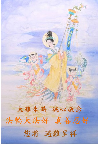 写出朋友的故事,是想鼓励同修们,一定要给身边的有缘人讲大法的殊胜,告诉人们在当前瘟疫肆虐之际,一定要相信法轮大法好,相信念“九字真言”能保平安!建议同修随身多带几张“九字真言”卡片(护身符),送给有缘人,告诉他们这是救命的真言,希望他们能从这场大瘟疫中走过去。
