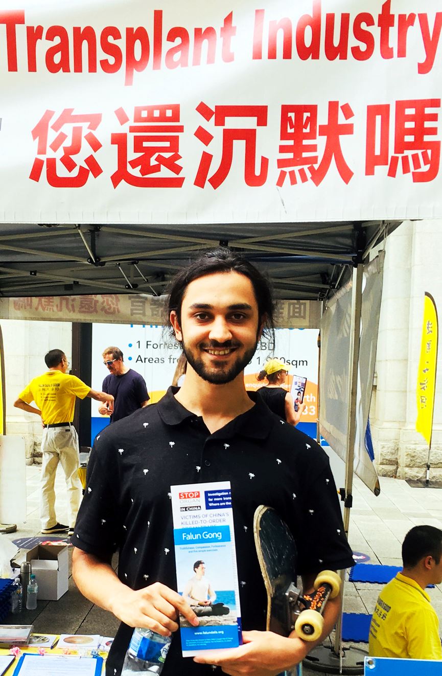 居民赛奇(Sachi)表示,大概于10年前也在此真相点,他第一次了解到了法轮功在中国被迫害的事,今年又在社交媒体英文大纪元读到相关讯息。他表示:“我知道中国共产党控制媒体,在国内封锁讯息使中国百姓不知真实消息。天安门自焚是假的,共产党假造天安门自焚的新闻,企图引起人民对法轮功的仇恨。”