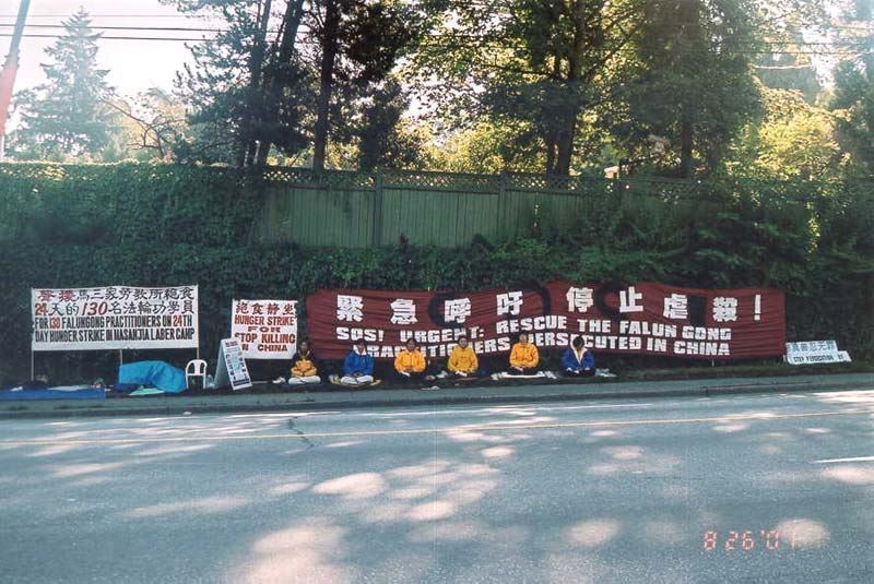更多法轮功学员陆续开始绝食,抗议这种非法行为。直至2001年7月底,马三家教养院内约有130多名法轮功学员集体绝食。此事件在国际上被曝光后,居住于美国华府、纽约、芝加哥、休士顿、洛杉矶以及加拿大多伦多、渥太华、德国柏林、澳洲堪培拉、香港等地的法轮功学员,不约而同的在当地中共大使馆、领事馆前静坐、绝食,声援在马三家教养院被迫害的法轮功学员,形成一个对北京当权者(江泽民)的一项国际性抗议活动。其中加拿大温哥华法轮功学员昼夜24小时持续请愿,至2003年5月仍未中断。